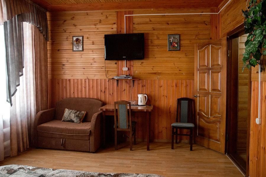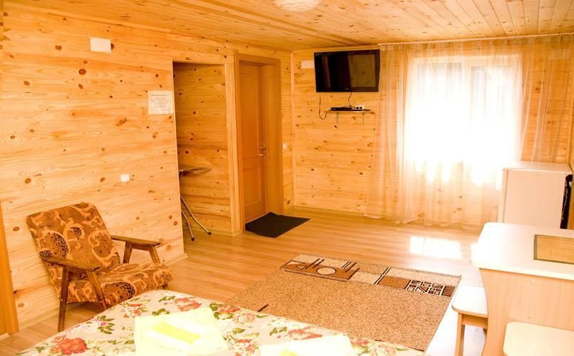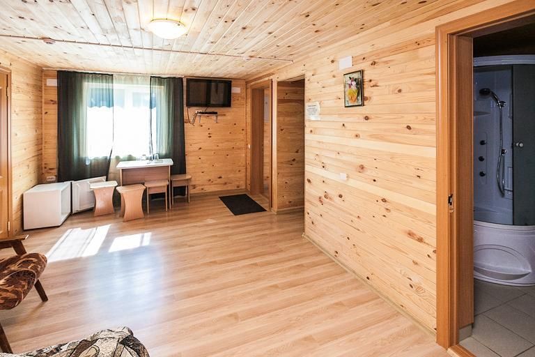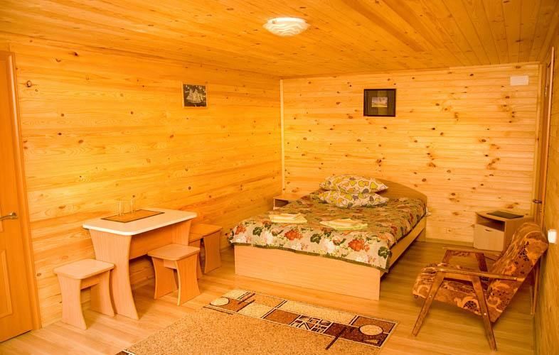 Для размещения предлагаются: благоустроенный корпус с номерами класса «Люкс», 2-этажный деревянный корпус с номерами «Люкс» и «Полулюкс», 10 утепленных бревенчатых домиков с открытой верандой.