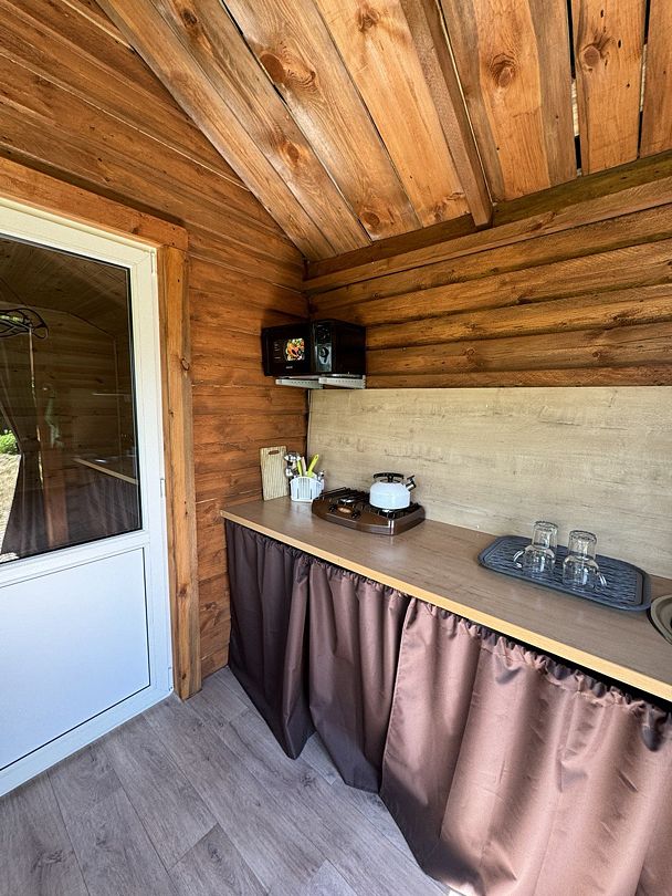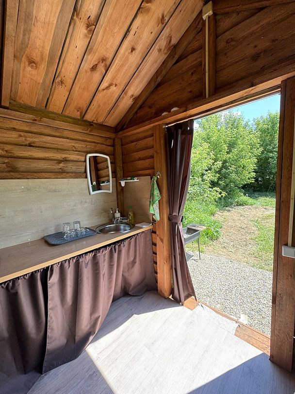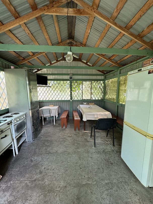 Туалет и душ общие на территории. Есть общая кухня и общие беседки с мангалами.