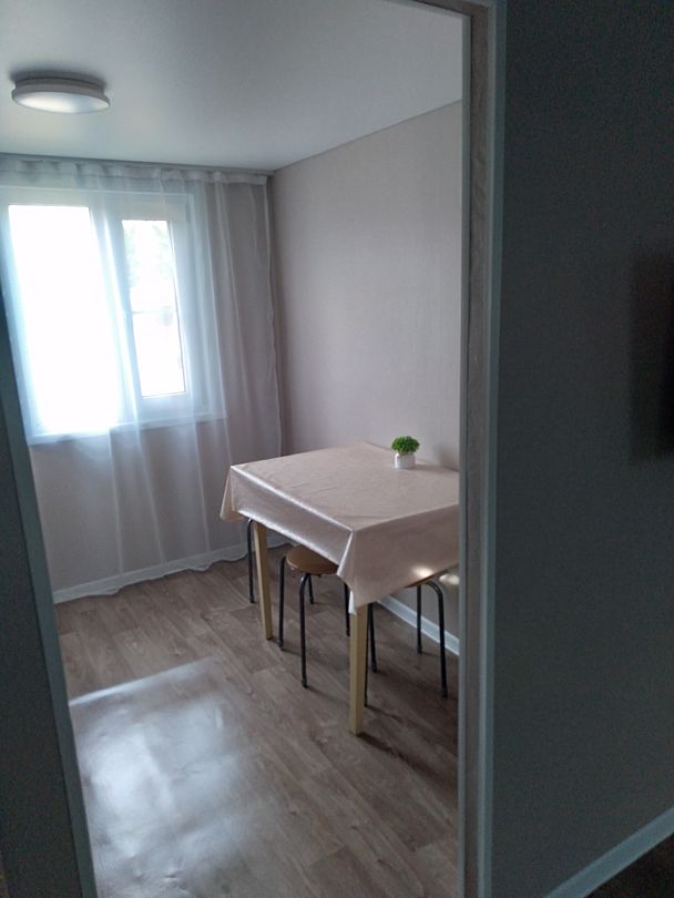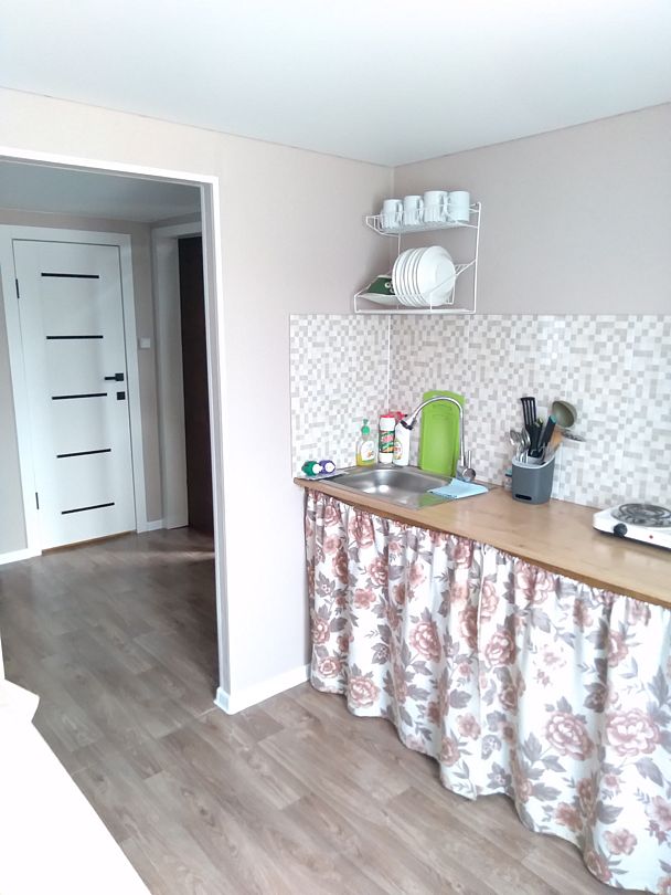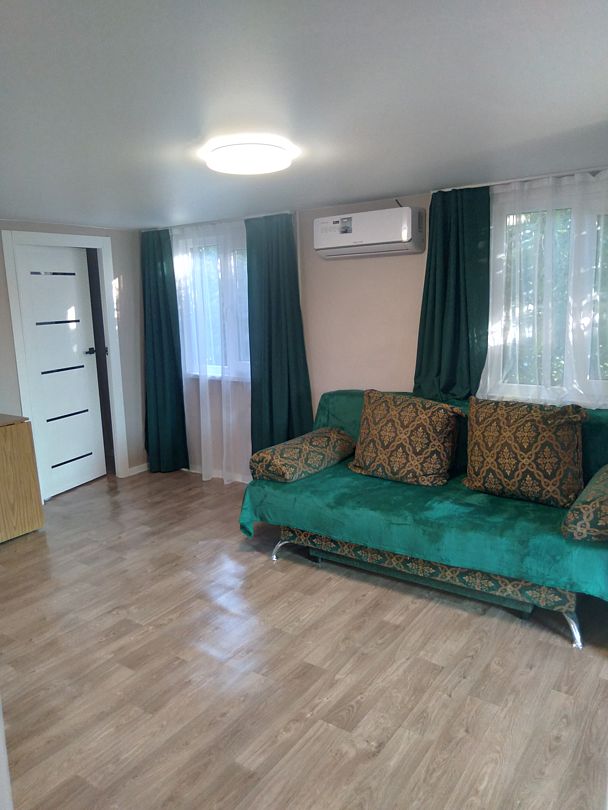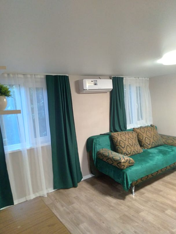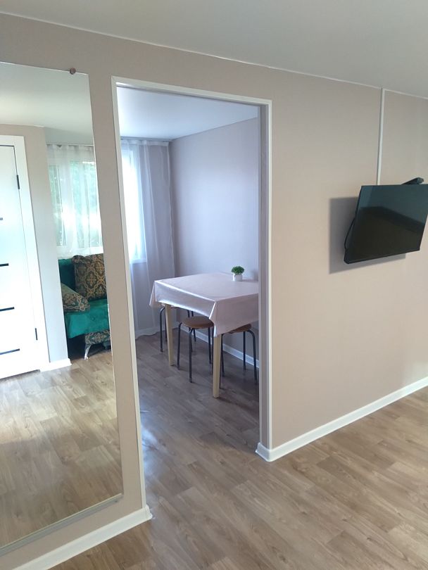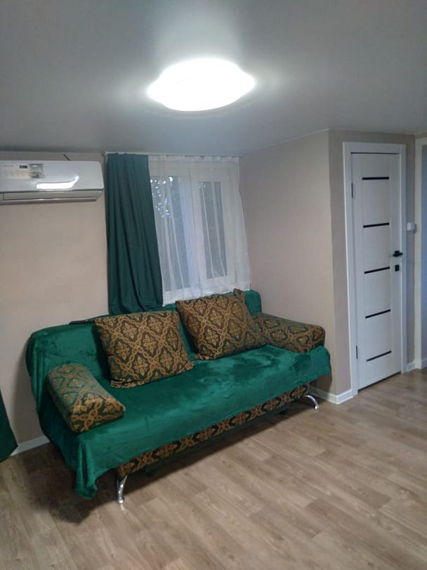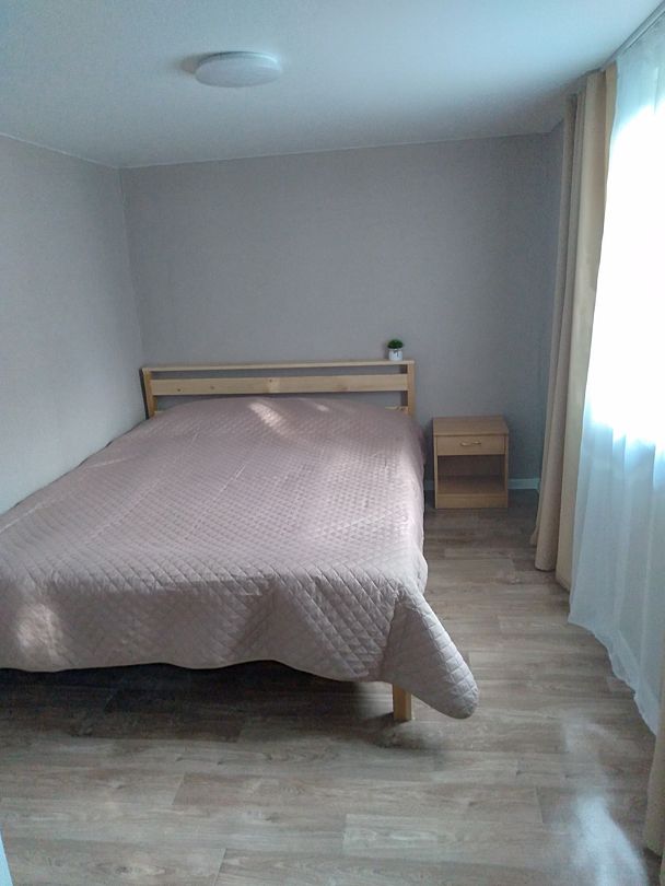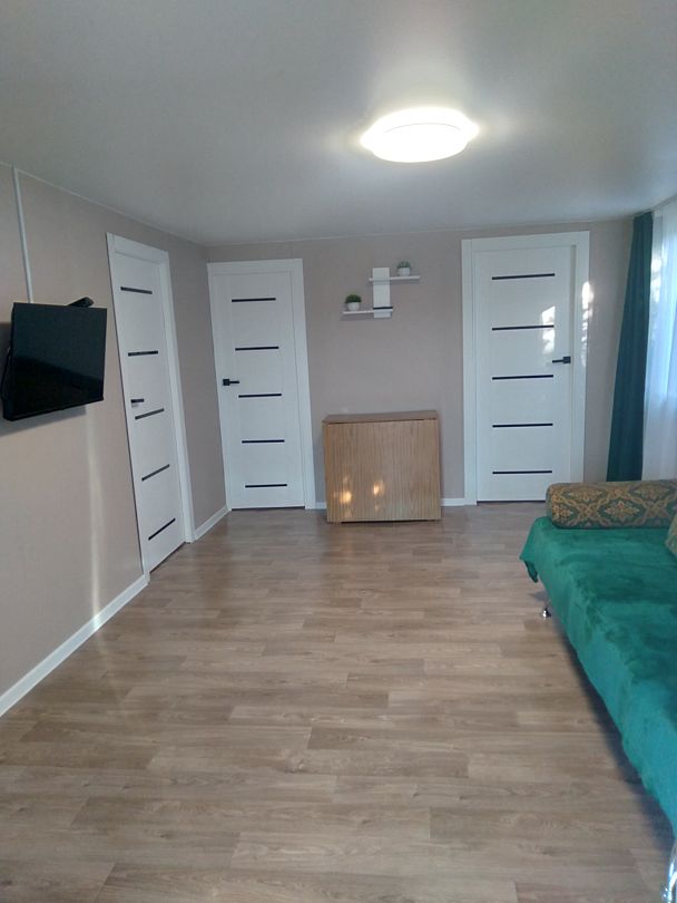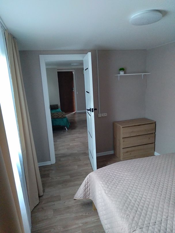 Номер состоит из 2-х комнат. В номере 4 односпальные кровати, постельное белье. Столик, стулья, вешалки для одежды, розетки.