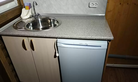 2 кровати, цифровое ТВ, шкаф для одежды, кухонная зона с посудой, холодильник