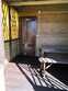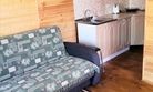 Большая кровать, диван, кресло-кровать, телевизор, вентилятор, кухонная зона, посуда, плитка, чайник, микроволновая печь, холодильник, горячая/холодная вода, душевая, туалет, на мансарде большой стол, лавочки).