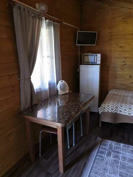 В домиках чисто, за 6 тыс/сутки есть всё необходимое для проживания с детьми.НедостаткиКак оказалось по приезду на базу, что сезон закончился, все кафе были закрыты, хорошо, что мы были готовы к самостоятельному приготовлению еды.