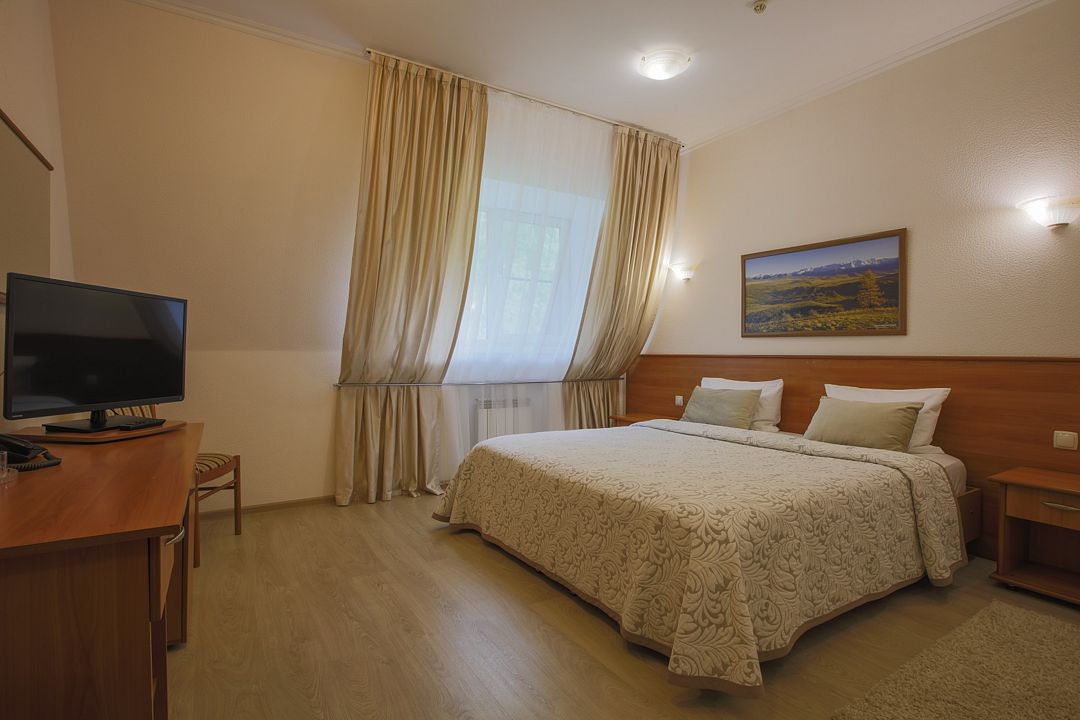 Камерный формат. В санатории всего 28 номеров, одновременно у нас могут разместиться не больше 60 человек. Уютная атмосфера идеально подходит для отдыха и лечения в Белокурихе. Мы выбрали концепцию отдых по-домашнему. Мини-формат лучше всего подходит для ее реализации.