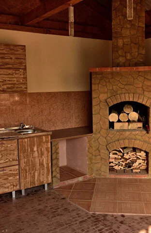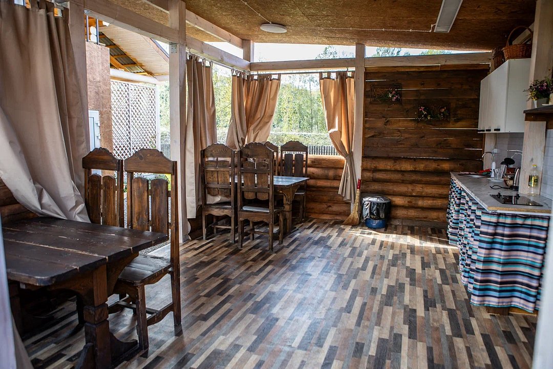 Для компании до 30 человек: оборудованная кухня, камин, печь, обеденный стол, организация банкетов.