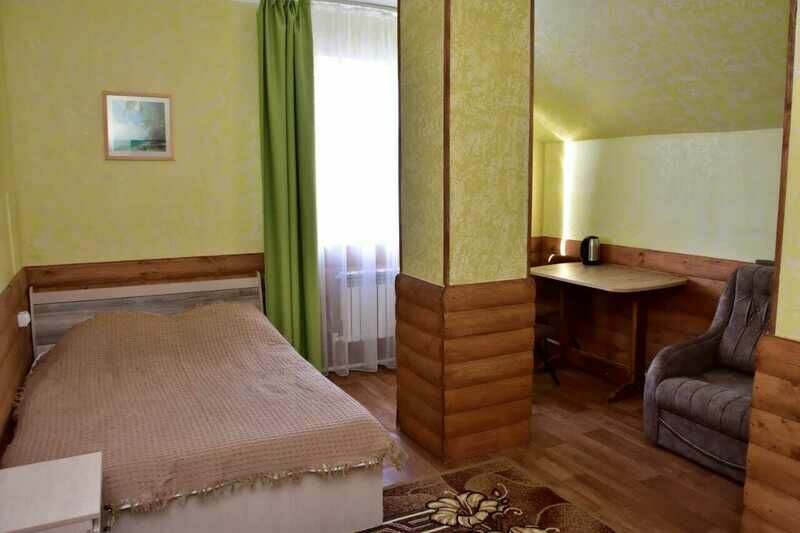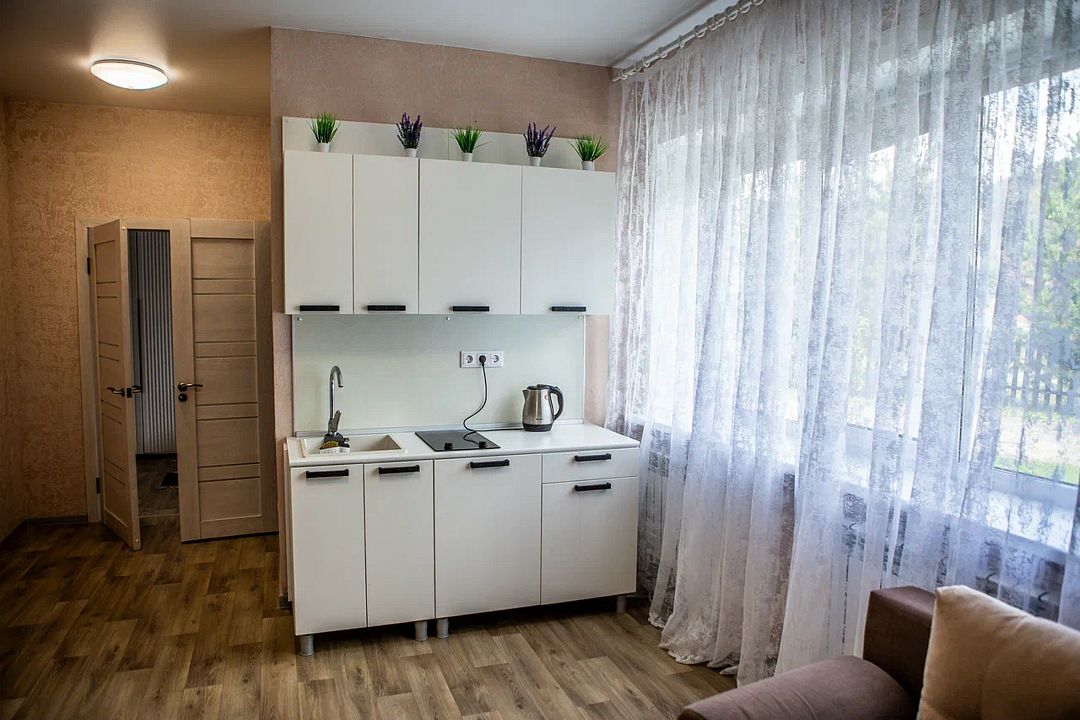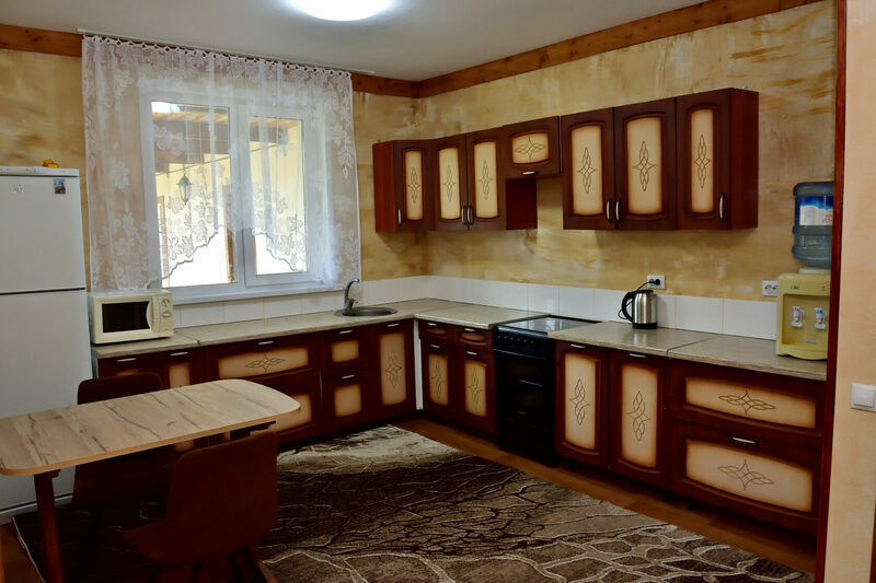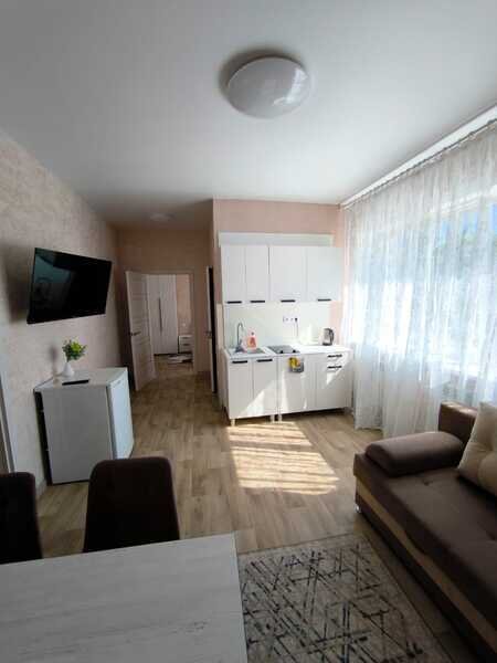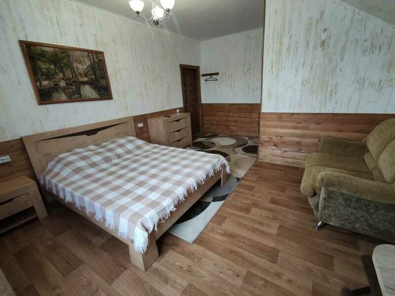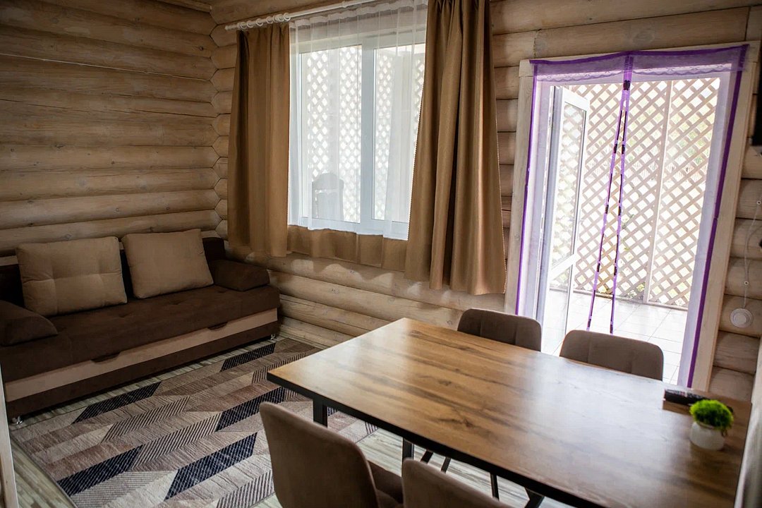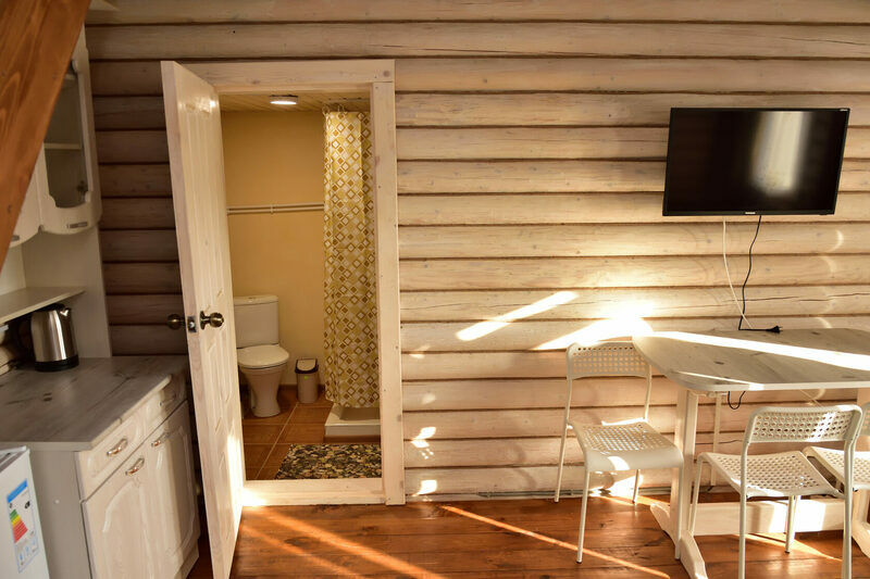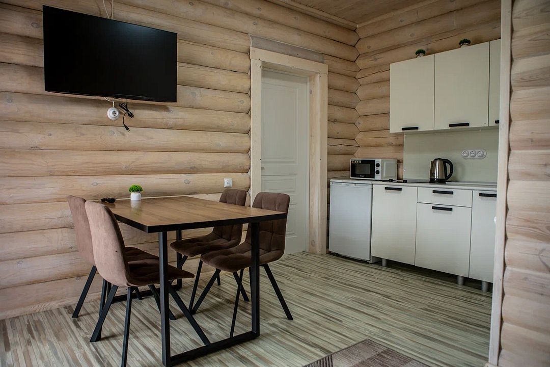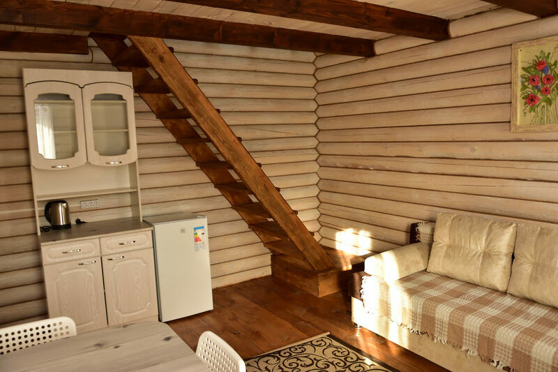 Двухкомнатные номера в новом доме с оцилиндрованного бревна. В каждом номере имеется кухня, санузел, душ, двухспальная кровать, евро-диван.