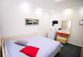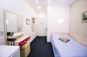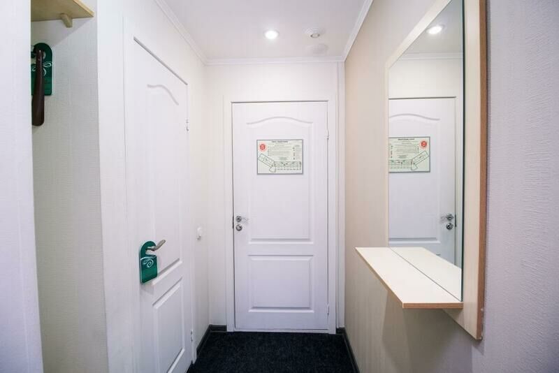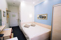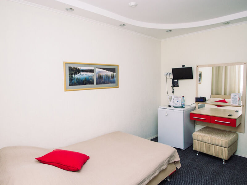 14,1 кв.м, 1,5 спальная кровать, тумбочка, полка-зеркало, шкаф, ТВ, чайник, набор посуды, холодильник, фен, телефон (внут. связь), с/у, душ (поддон).
