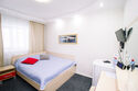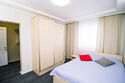 44,6 кв.м, одна 2спальная кровать, тумбочки, шкаф-купе, полка, зеркало, пуфик, кресло, ТВ, чайник, набор посуды, холодильник, фен, телефон (внут. связь), с/у, душ. кабина.