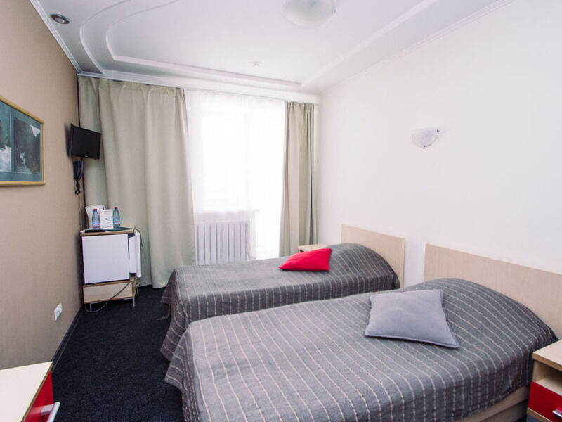 14,7 – 18,1 кв.м, двуспальная кровать, полка-зеркало, вешалка, шкаф, ТВ, чайник, набор посуды, холодильник, фен, телефон (внут. связь), с/у, душ (поддон/ кабина).