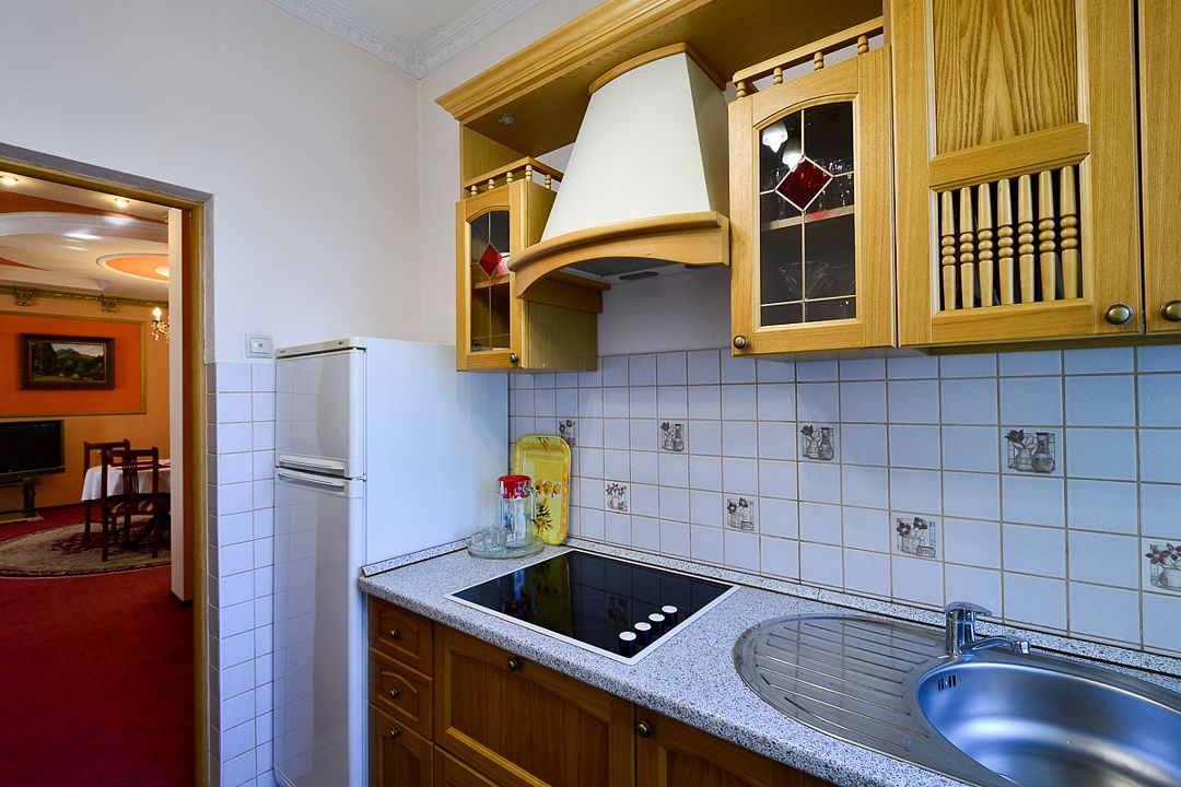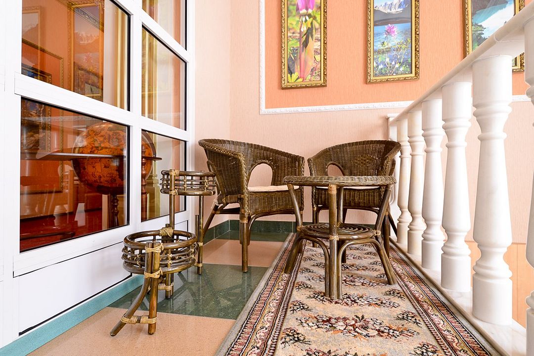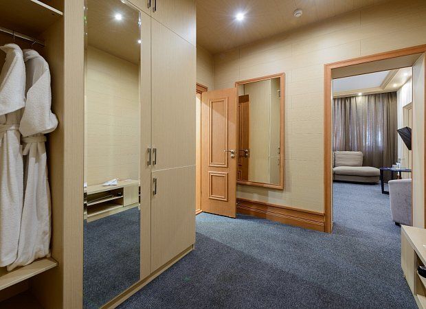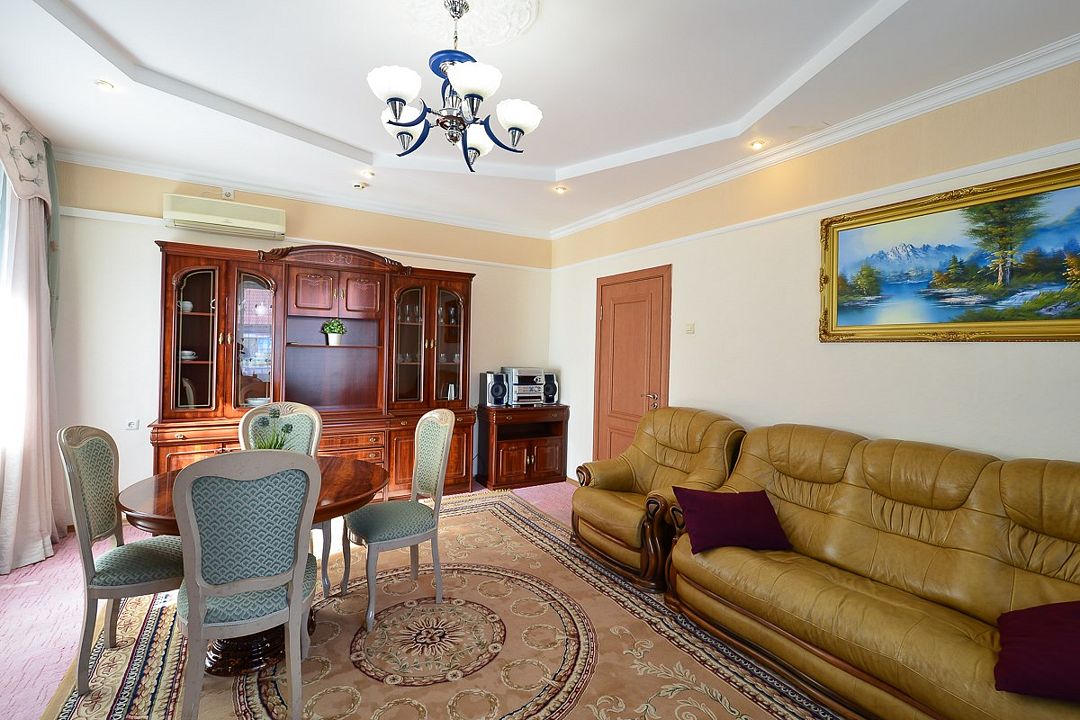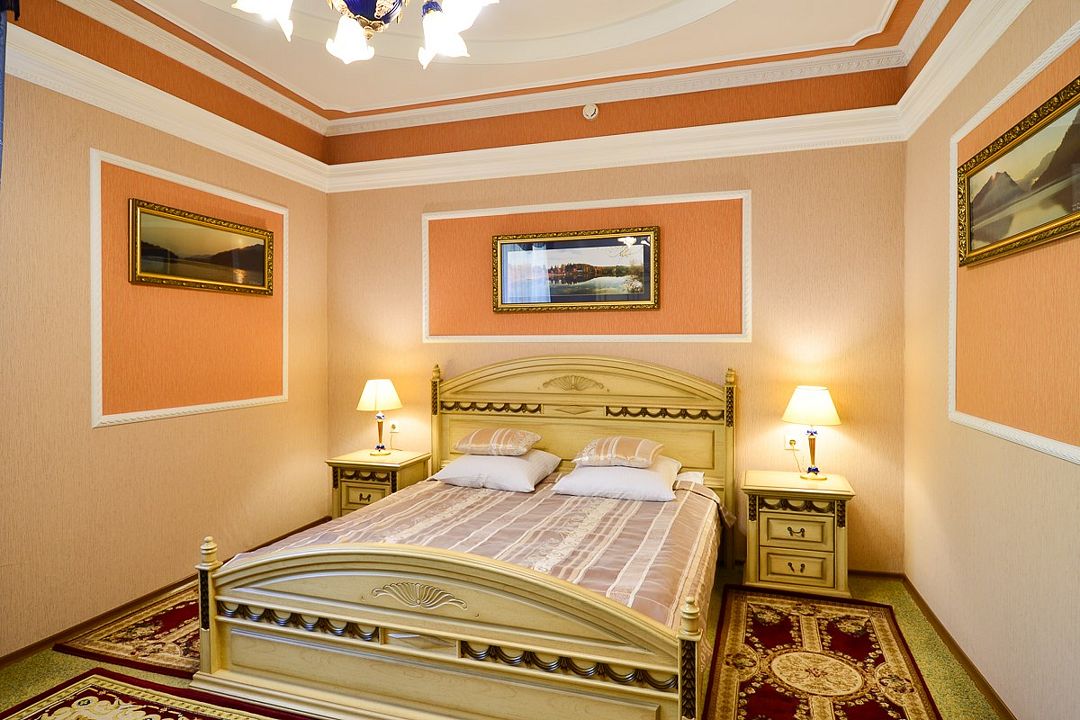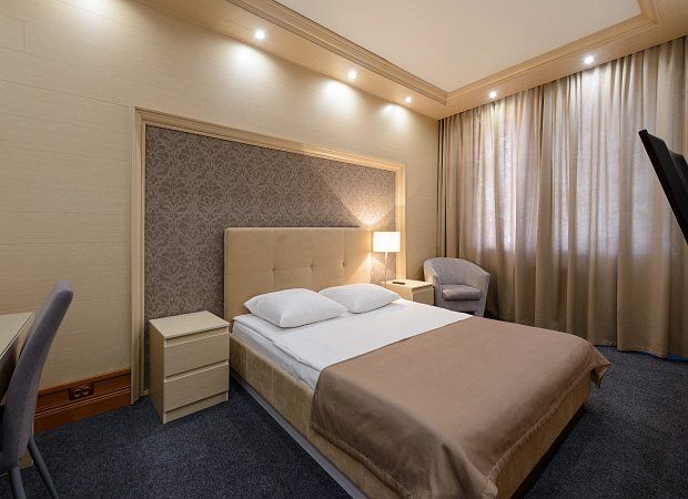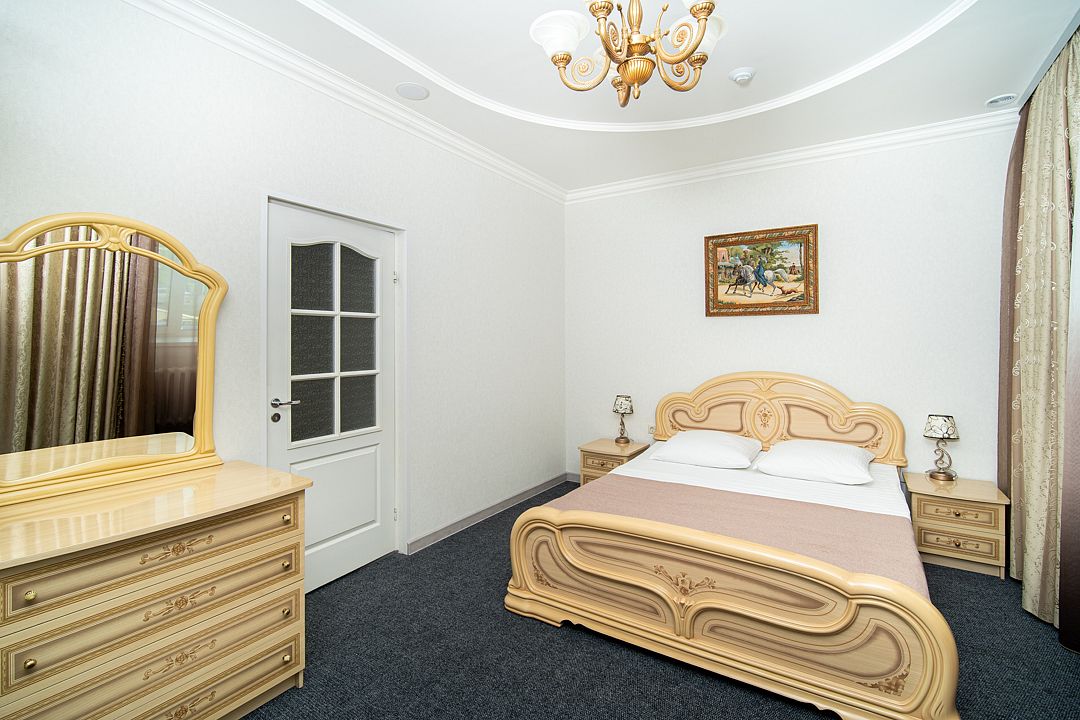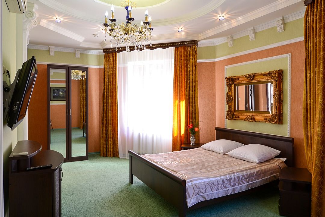 Мебель в спальной - ампир :). Шторы просто шок - пылесборники. Розетки где они их брали? Руки людям за такое потрубать надо. Я даже еле мог вставить вилку, для женских рук это невыполнимая задача. Большая лоджия (наверное так назвать) где жалюзи половиной отсутствуют, половина сломаны, порваны (1 этаж !!). Окна раздвижные - замки сломаны!!!! ЗОМБО ящик включили случайно 1 раз, одни помехи - люкс!!! Сейф маленький, только для кошелька, планшет уже не залезает. Ресторан для проживающих в люксе отдельно от основного блюда, что хорошо, так как в ос но одном ресторане муравейник. Здесь тихо и спокойно. В отличие от Кисловодска, шведский стол менее разнообразный, ЧТО ОЧЕНЬ ХОРОШО, так как не провоцирует на обжорство и с другой стороны продукты вкусные!!!! Вообщем кухня понравилась, как уже писал обеды не надо было брать. Обстановка вокруг санатория- небольшая прогулочная улица, где с одной стороны до 23.00 орёт дурняком наша попса в исполнении местных звёзд, с другой дискотека. Хорошо с Москвой разница 4 часа, 23.00 это 19.00 по Москве. Культура отдыха до нас дойдёт не скоро. Конечно это не Баден-Баден, но люди еду в санаторий лечить сердце, нервы и эта идиотская музыка....Природа замечательная. Ресепш работают быстро, молодцы. Мне пришлось прервать отпуск, уехать на несколько дней раньше, пересчитали и вернули деньги. Спасибо. В это раз с лечением не получилось, поэтому ничего сказать не могу. Есть достаточно большой бассейн в санатории.