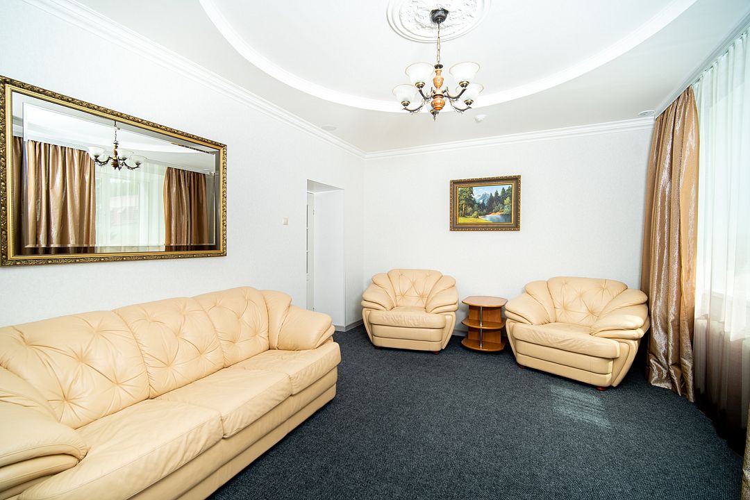 Путешествие с паройЛЮКС ДОБРО ПОЖАЛОВАТЬ В СССР.Были в Кисловодске в одноименном санатории. Увидели рекламу Санатория Центрсоюз в Белокурихе. Была распродажа Аэрофлота и сразу же забронировали Цетросоюз Белокуриха. Уже перед приездом прочитал другие отзывы и сейчас конечно действовал по другому, возможно просто гостиницу выбрал, возможно другой номер Цетрсоюза, возможно без обедов, так как уходили на целый день и не обедали. Теперь к делу. Бронировал на сайте Санатория и конечно номера люкс есть в разных корпусах. Корпусов 3, как я понял. Люксы везде разные :). Как и читал в отзывах самый позорный корпус 2, он нам и достался. Привет из СССР. Что за вкусы у людей которые облагораживают номера. Номер большой. 1 этаж, люди ходят и заглядывают в номер. Прихожая с нереально большим и шумным холодильником Samsung, хорошо есть дверь- закрывали чтобы не слышать ночью. Туалет с пластиковой крышкой и сиденьем размер ММС на 10 см. Меньше самого унитаза!!!! (Люкс), гидромассажная ванная с известкоывми отложениями, занавесок нет, вся вода на пол. Есть сауна, что очень большой плюс после походов. Мебель в ванной очень старая и допотопная. Чтобы включит фен необходимо на зеркале включить в розетку, а потом подключить само освещение зеркала, чтобы заработал фен!!!