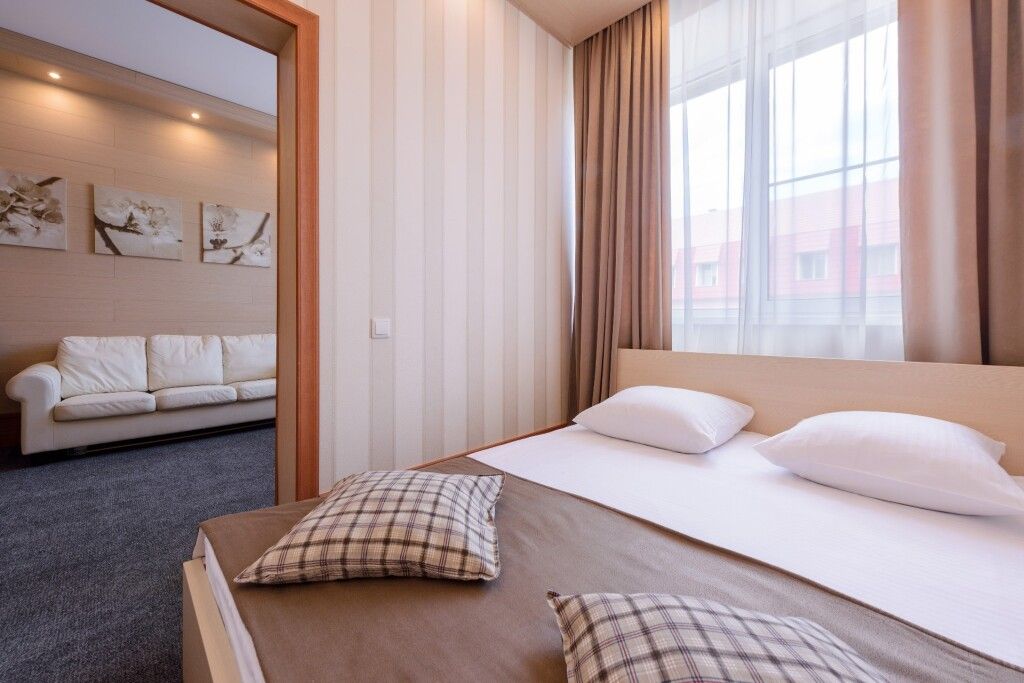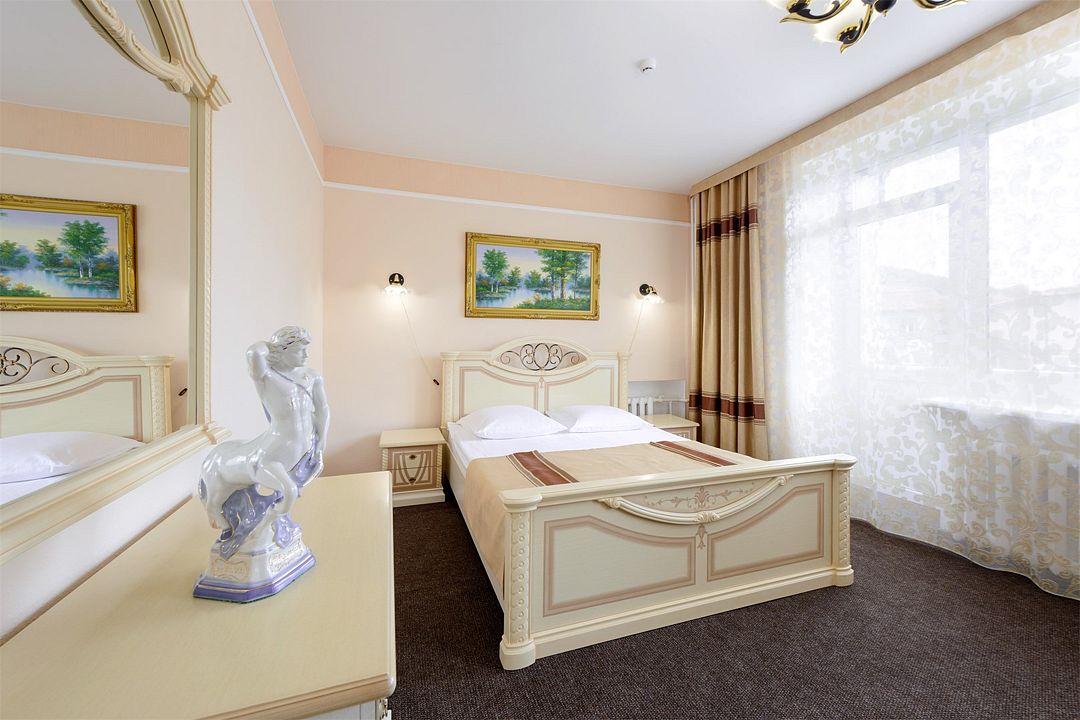Номерной фонд здравницы за последние годы подвергся серьезной реновации. Был проведен капитальный и косметический ремонт. Сейчас номера санатория отличаются свежими интерьерами, в каждом номере – телевизор, телефон, холодильник, чайник.
