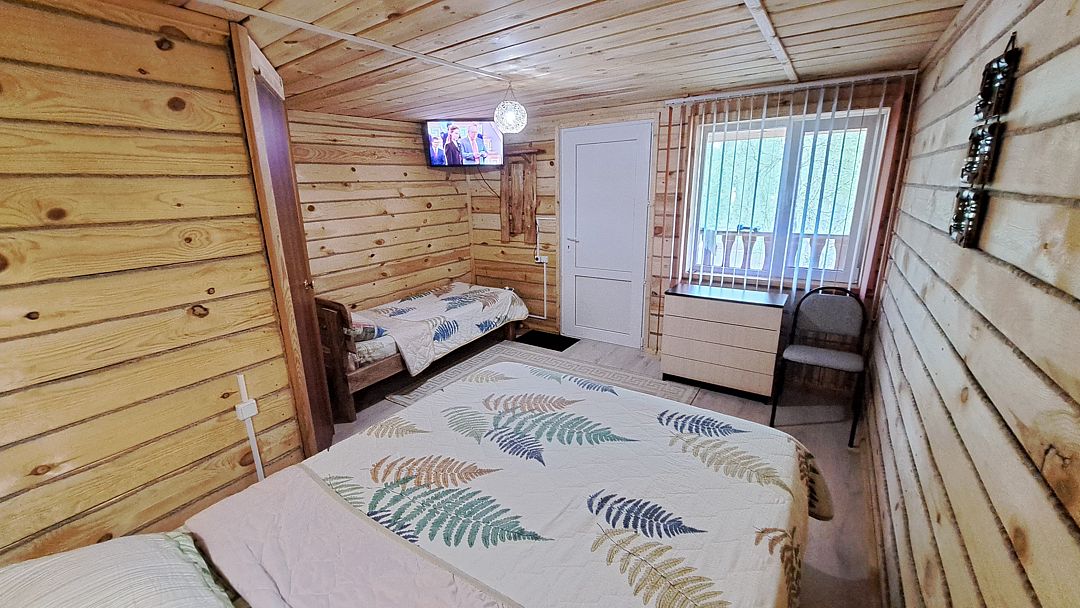 4-х местный номер с 1 двухъярусной и 1 двуспальной кроватями.