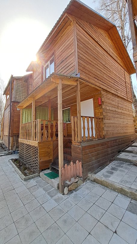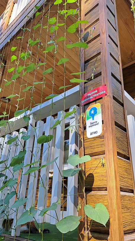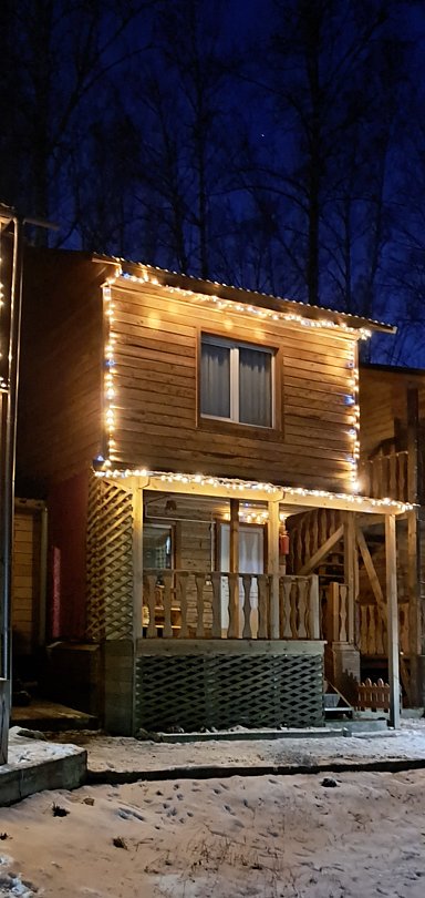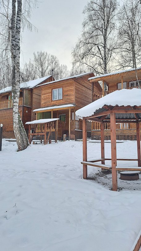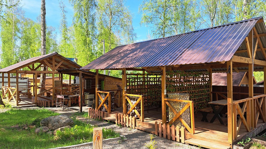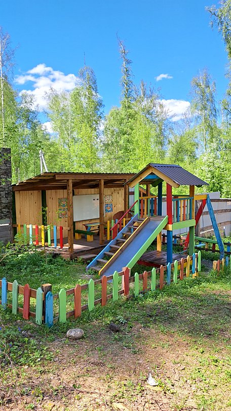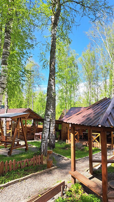 Помимо жилых помещений на территории имеются: детская площадка, уличный туалет, качели, бассейн без подогрева, лежаки, парковка, костровище под крышей. Питание не предоставляется, на кухне царит самообслуживание.