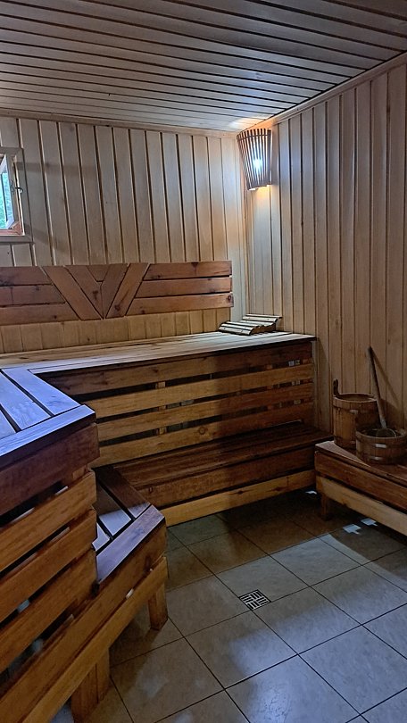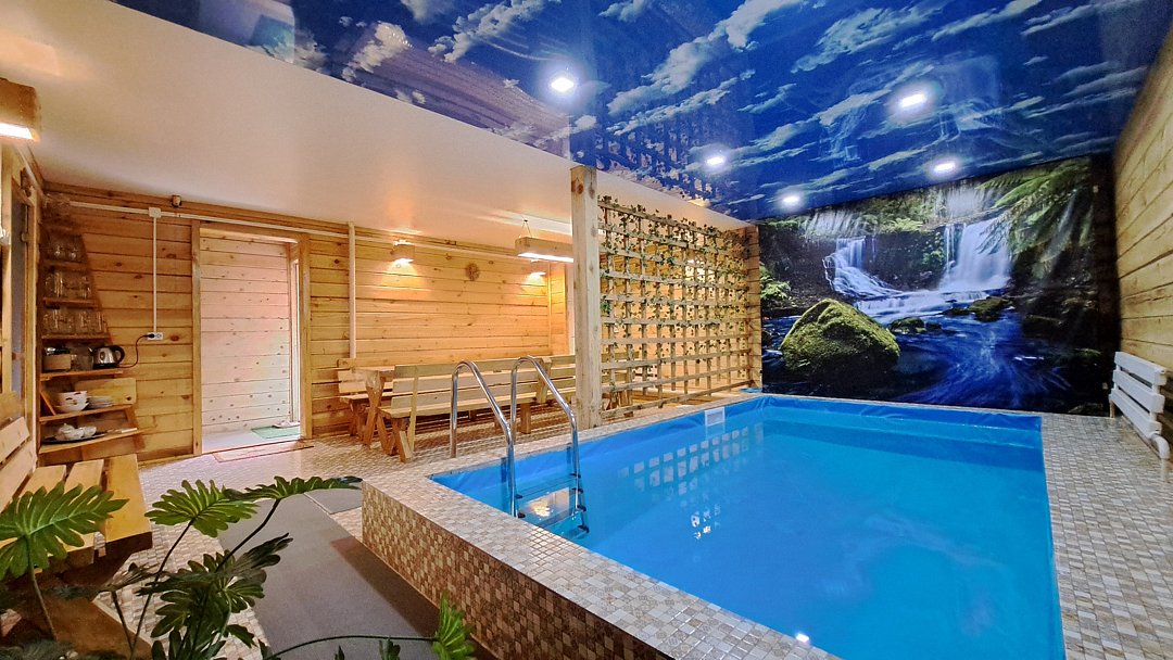 Инфраструктура: тапочки, бассейн, шапочкиВремя работы: до 23.00Баня рассчитана до 10 человек и минимальное время посещения 2 часа. Подогрев бассейна 25-27*С, размеры 4*2,5*1,5 м.