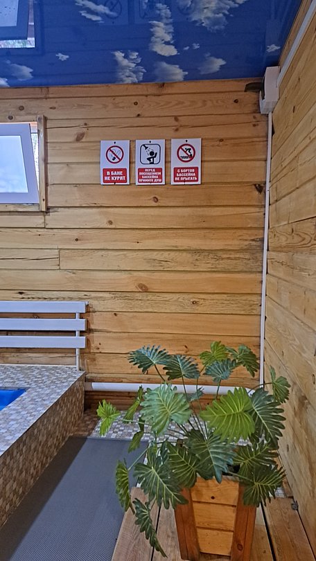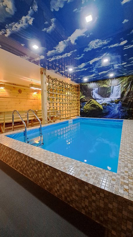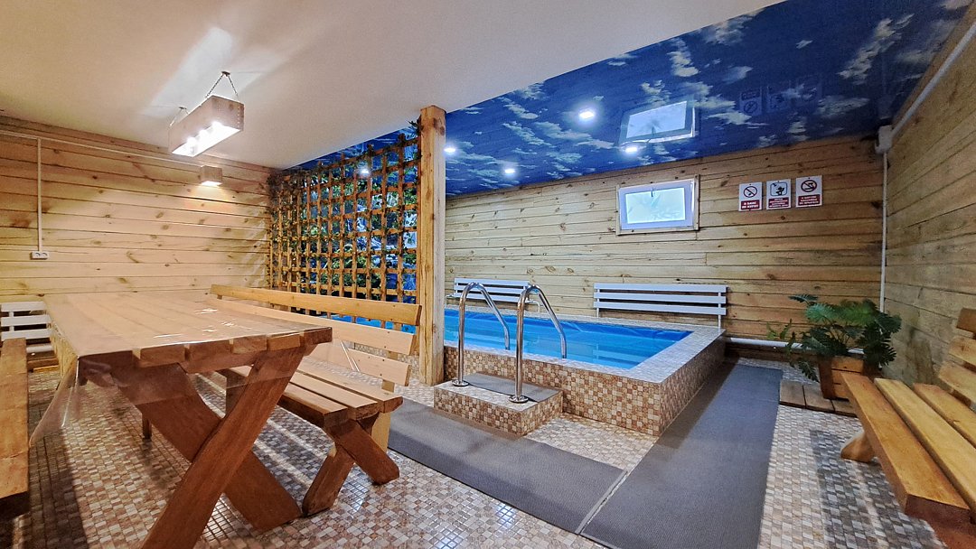 Баня рассчитана до 10 человек и минимальное время посещения 2 часа. Подогрев бассейна 25-27*С, размеры 4*2,5*1,5 м.