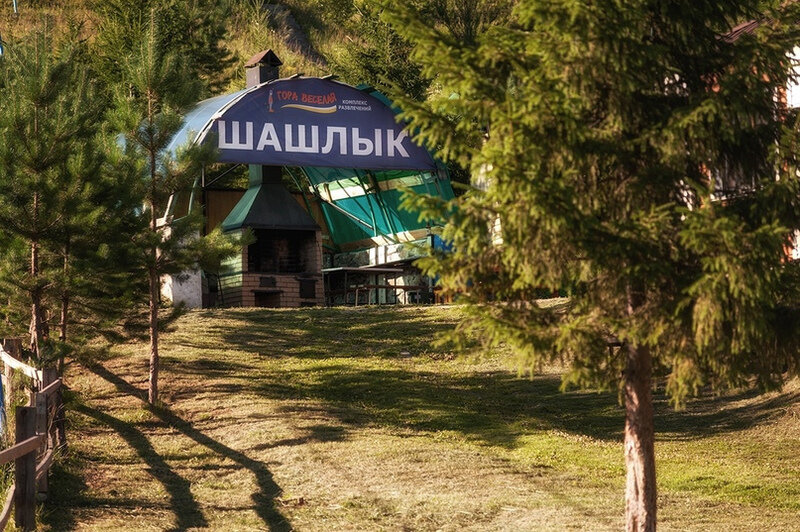 На горном склоне, недалеко от реки Катунь расположен туркомплекс «Гора Веселая», в котором Вы можете разместиться в комфортабельных, но доступных по цене номерах или арендовать коттедж. Питание самостоятельное или в кафе. Также на территории базы отдыха имеются мангалы и тандыр.