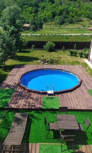 Тип бассейна: открытый бассейнРядом с бассейном: шезлонгиГости могут с удовольствием плескаться в освежающей воде бассейна. Для безопасности юных гостей, чей рост не превышает 140 см, необходимо использовать жилеты или нарукавники — это гарантия беззаботного и веселого времяпровождения.