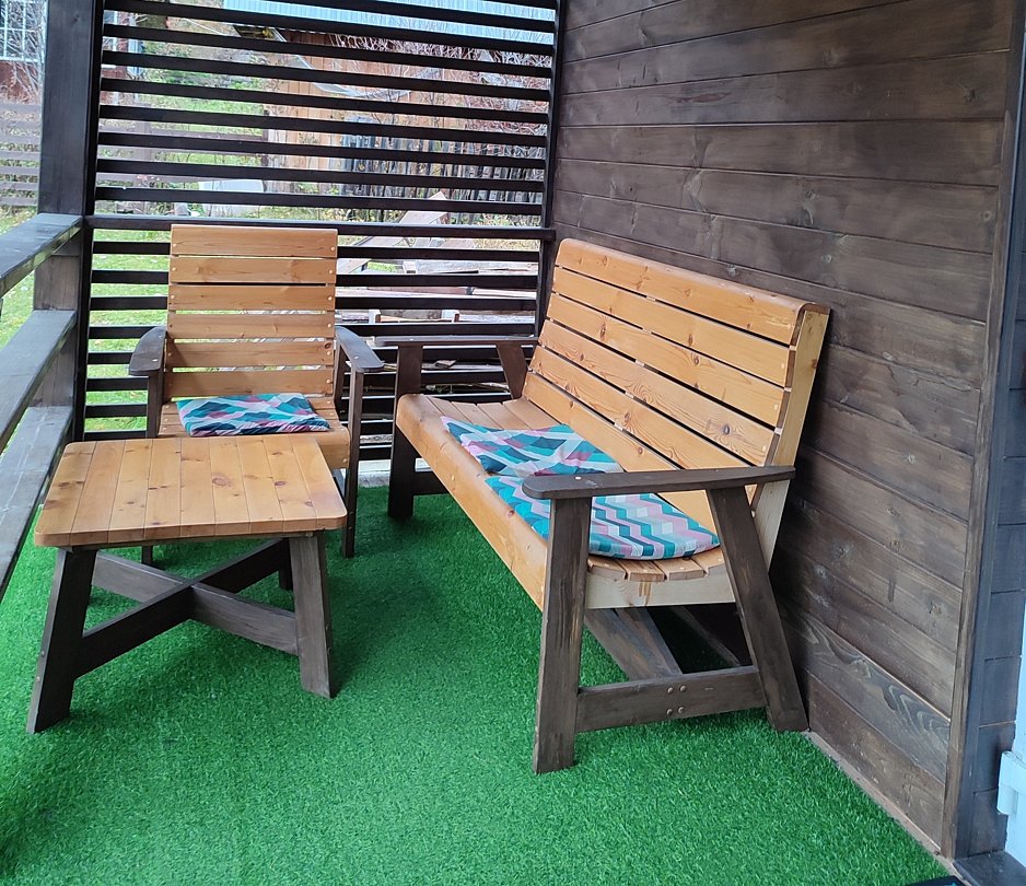 Отдельно стоящий дом, для круглогодичного проживания, со своей террасой. В доме двуспальная кровать с возможностью разделения, диван/кресло. Мини кухня: микроволновая печь, чайник, холодильник, кухонные принадлежности. Сан. узел с душевой.