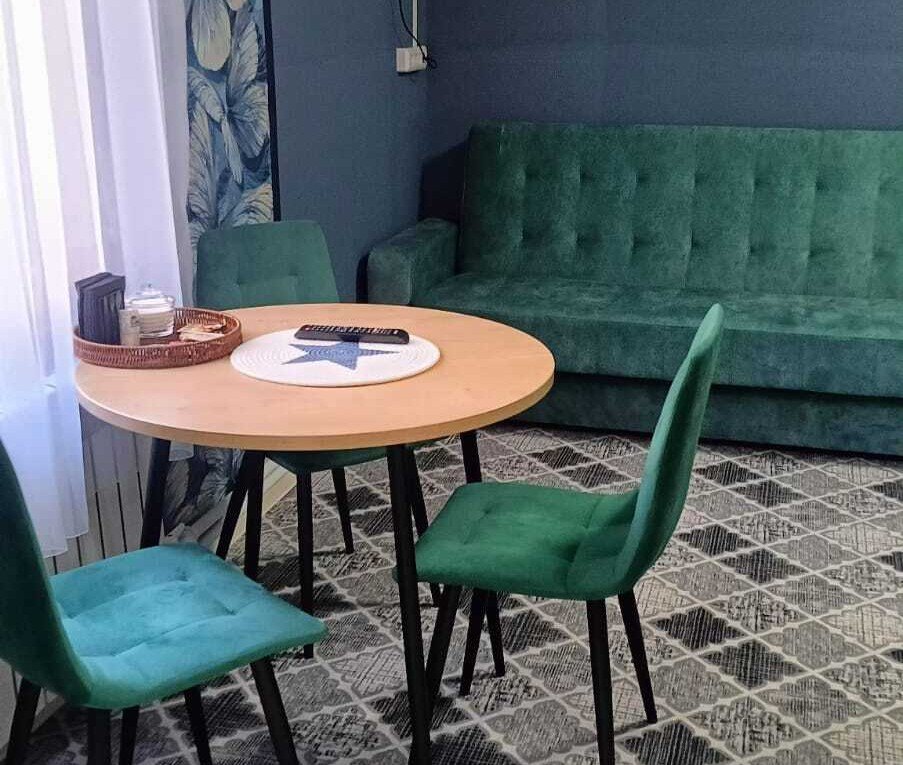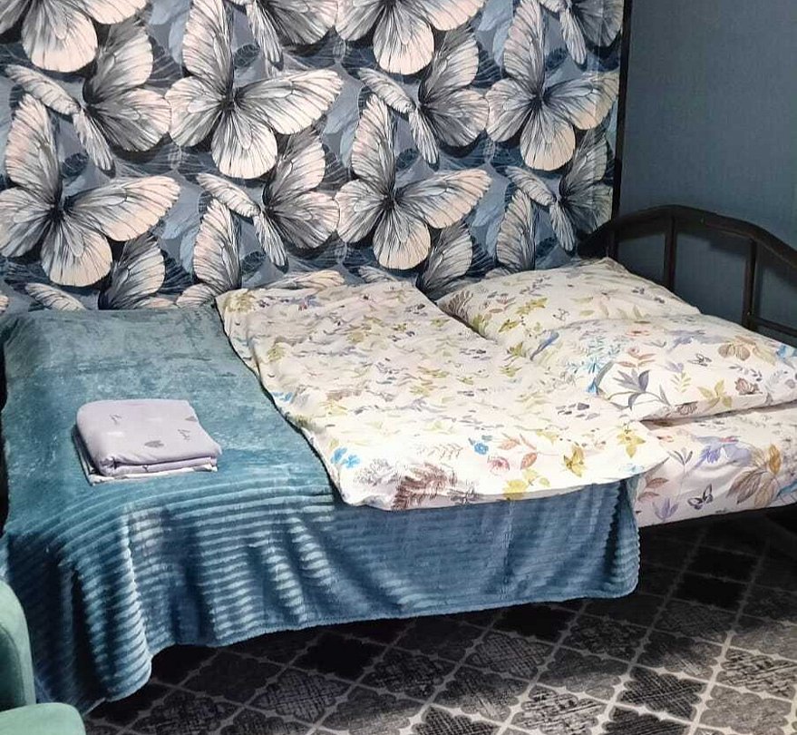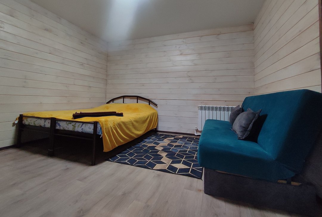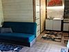 Номер 4-местный с двуспальной кроватью (с возможностью разделения) и раскладной диван-кровать. Оборудованная кухня : микроволновка, чайник, холодильник, кухонные принадлежности. Сан. узел с душевой.