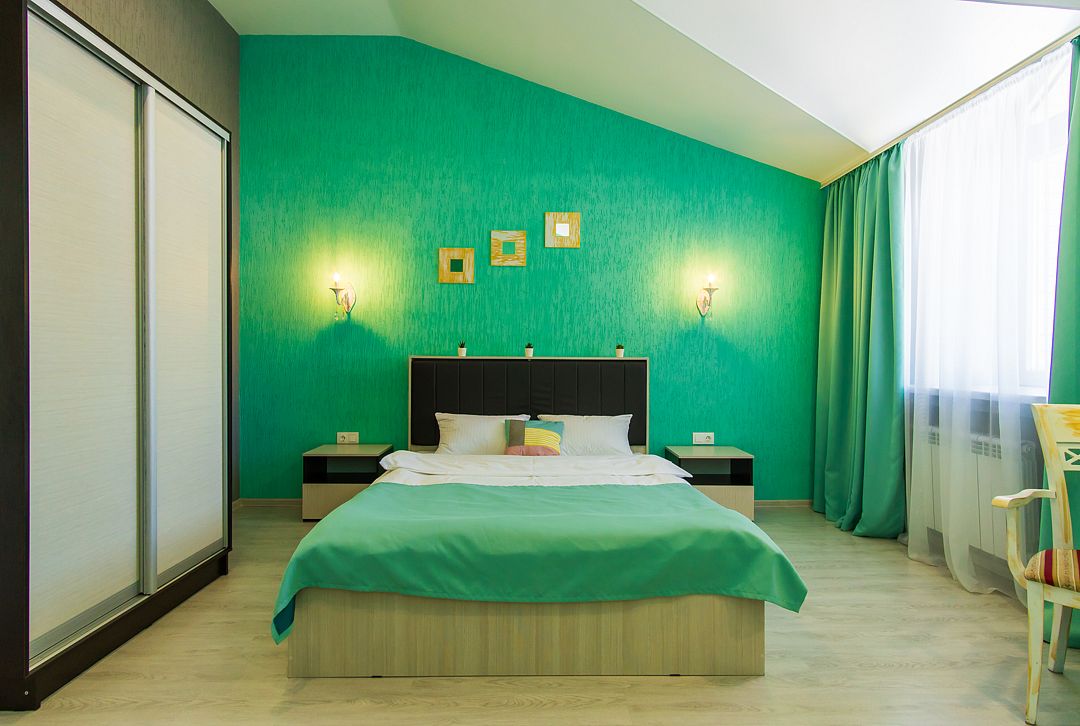 Двухместный номер с большой 2-спальной кроватью площадью в 20 м2. Номер, который выполнен в классическом стиле, с высокими потолками, рабочим столом и всеми необходимыми принадлежностями.