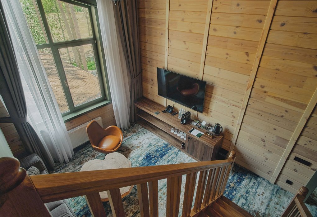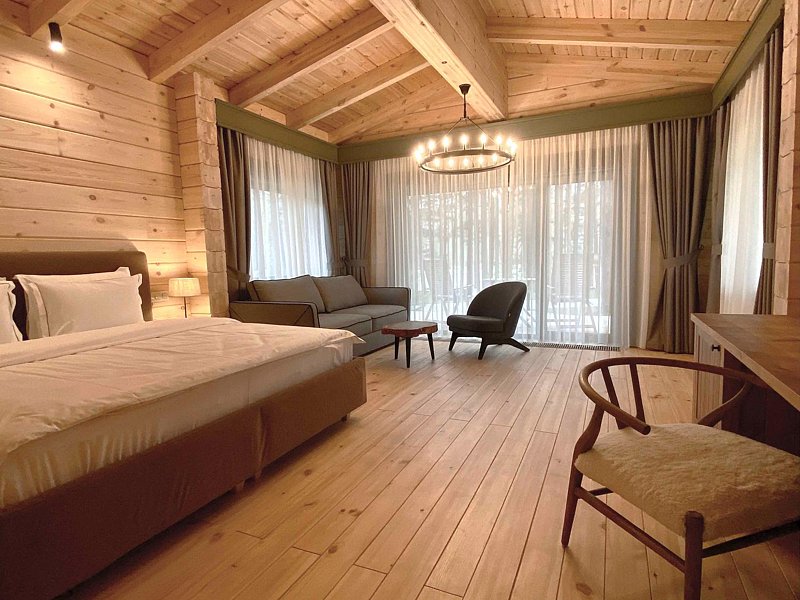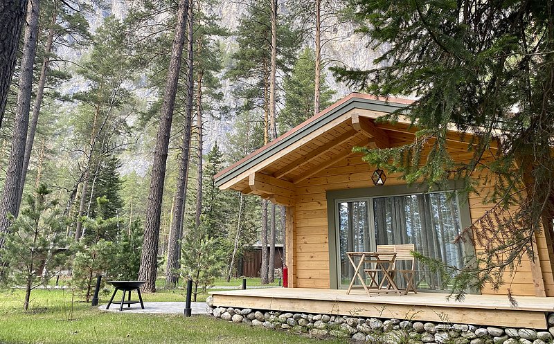 Комплекс, находящийся в природной зоне «Бирюзовая Катунь», занимает территорию площадью 8,5 гектаров. Для размещения отдыхающим предлагаются современные комфортабельные коттеджи, выстроенные из алтайского кедра и сосны в стиле современных шале, а также отельный двухэтажный корпус со стильными номерами. В номерах – эргономичный дизайн и авторский интерьер, панорамные окна и террасы, откуда открываются живописные виды на Катунь и отвесные скалы. В каждом номере предусмотрен санузел с душем, есть кондиционер, электрочайник, телевизор, фен. В шале своя мини-кухня, в гостиной установлен камин.