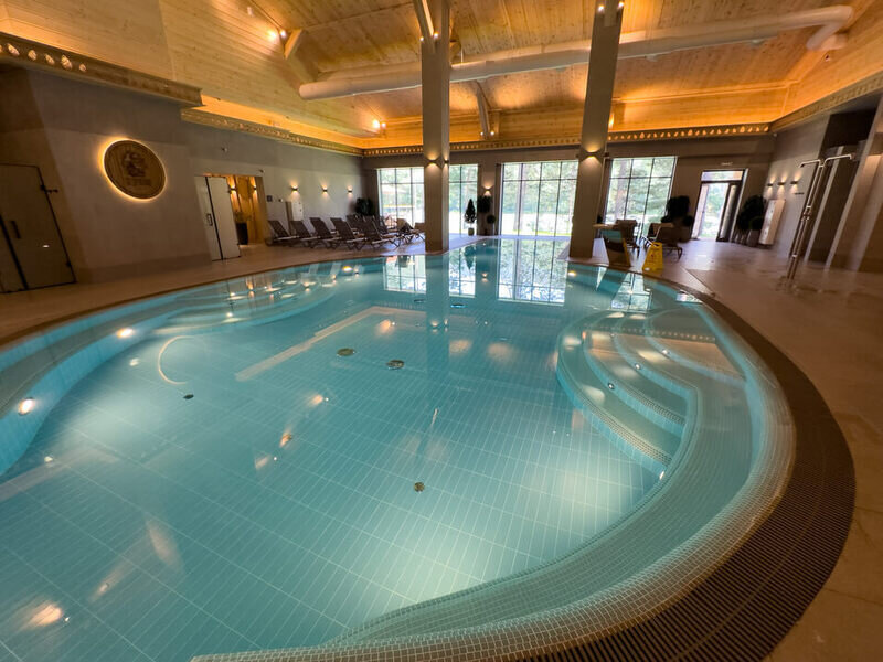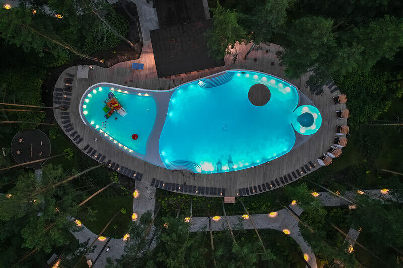 Круглогодичный бассейн с панорамным видом на живописные горные пейзажи предлагает незабываемое плавание. Благодаря панорамным окнам и поддержанию комфортной температуры воды, вы сможете погрузиться в атмосферу красоты и спокойствия в любое время года.