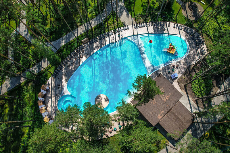 Тип бассейна: открытый бассейнВода в бассейне: подогреваемый бассейнРядом с бассейном: шезлонги, бар у бассейнаПлощадь: 940 м²Время работы: от 08:30 до 19:30Одной из главных достопримечательностей туркомплекса является просторный уличный бассейн, в котором поддерживается комфортный температурный режим. Он оборудован каскадным водопадом и системой пневмогидромассажа для максимальной релаксации. Расслабьтесь на шезлонгах вокруг бассейна, освежитесь в его прохладных водах или отдохните в летнем баре, наслаждаясь прохладительными напитками.