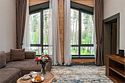 Wi-Fi, кондиционер, система климат-контроля, светильник, настольные лампы, фен, кофемашина, утюг, душевая кабина, санузел, теплый пол, халаты, банные полотенца, тапочки, косметические средства, кровать «King size», гладильная доска, диван, шкаф для одежды, вешалки, зеркало, обслуживание номеров, информационная карта, меню, сейф, чайник, раковина, ковровое покрытие, отопление, душ, меню подушек, стаканы, стул, тумба, туалетные средства, туалет, внутренний телефон, телевизор с плоским экраном, вид на горы, рабочий стол, чайная станция, набор для приготовления чая и кофе, вешалки-плечики, бутилированная вода, мини-бар (платно), мыло, затемняющая штора, дождевой и ручной душВ гостиничном номере
