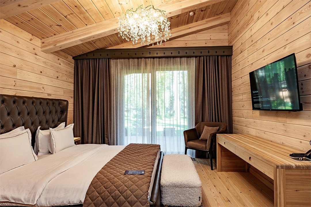 Классический номер с продуманным интерьером с двуспальной кроватью Кинг и завораживающими видами на алтайские горы располагает к расслабленному отдыху. Wi-Fi мини бар чайная станция питьевая вода сейф кондиционер ванная комната с душевой кабиной премиальная косметика халат, тапочкиУслуги и удобства