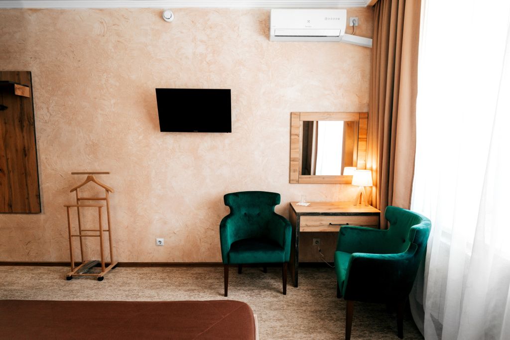 В номере вы найдёте телевизор, мини-бар и халат. Оснащение зависит от выбранной категории номера.