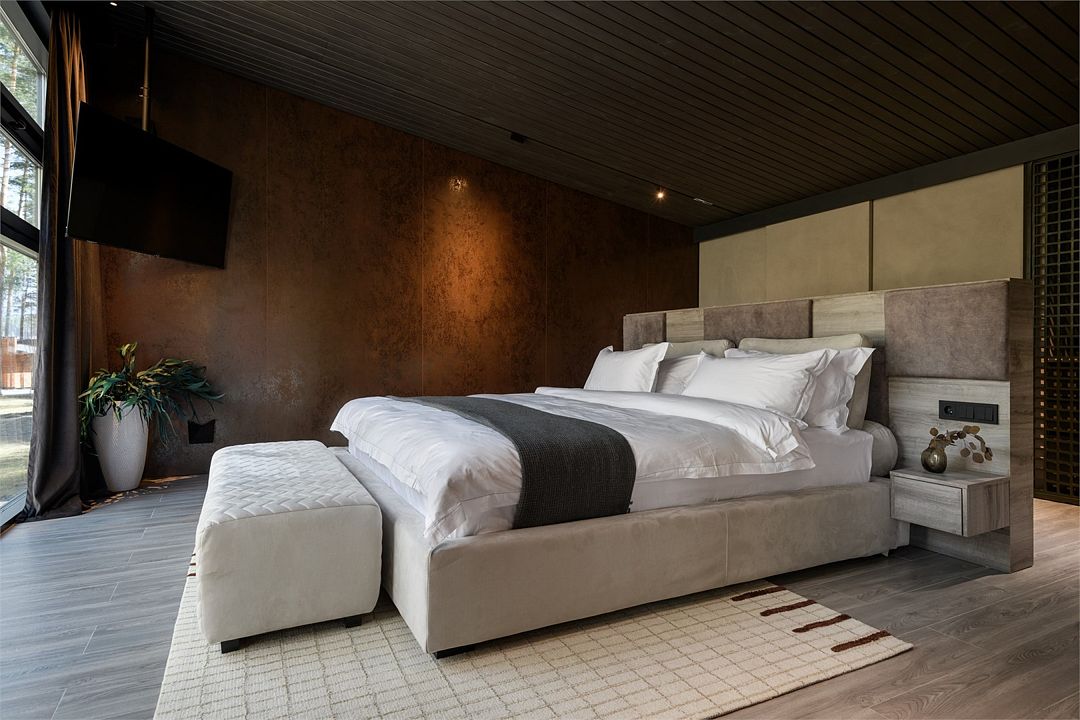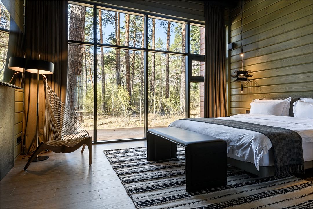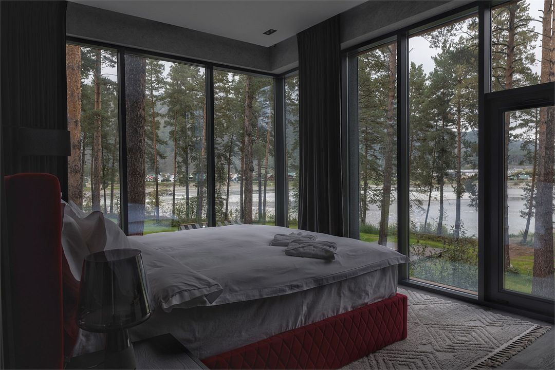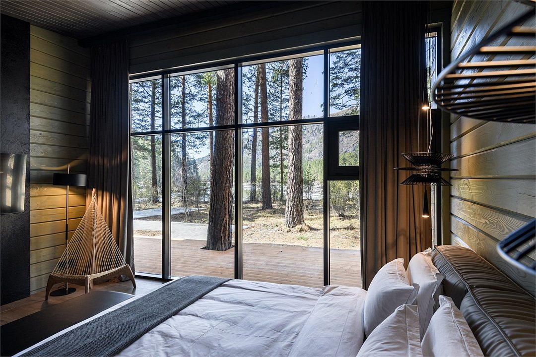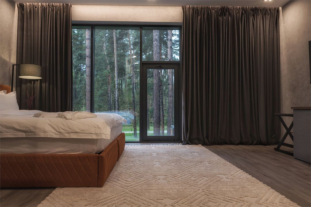 телевизор, Wi-Fi, телефон, фен, электронные замки, кофемашина, утюг, халаты, тапочки, двуспальная кровать, вешалки, письменный стол, зеркало, сейф, унитаз, раковина, вид на реку, вид во двор, стол, панорамные окна, мини-холодильник, шкаф-купе, вид на горы, вид на лес, чайная станция, туалетные принадлежности премиум-класса, бутилированная вода, шапочка для душа, затемняющая штора, дождевой и ручной душ, без питомцевВ гостиничном номере