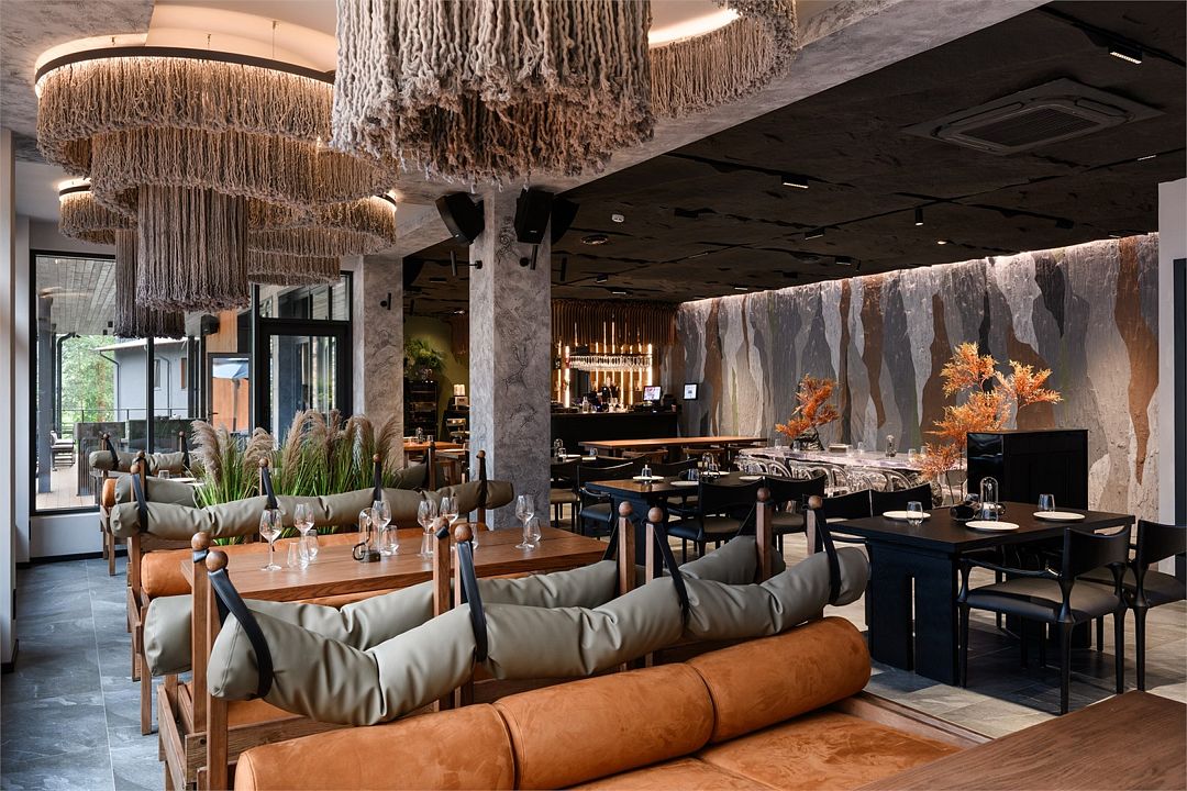 Ресторан «Горные пороги» — это настоящее удовольствие для гурманов. Интерьер заведения выполнен в натуральных оттенках, где преобладают элементы из дерева и текстиля, а посуда ручной работы добавляет особый шарм. Большие окна наполняют зал дневным светом, создавая уютную атмосферу, в которой можно наслаждаться каждым моментом. Меню ресторана составлено из натуральных продуктов и сбалансировано таким образом, чтобы способствовать гармонии с собой и природой. Это идеальное место для тех, кто ценит качественное питание и атмосферу расслабления.