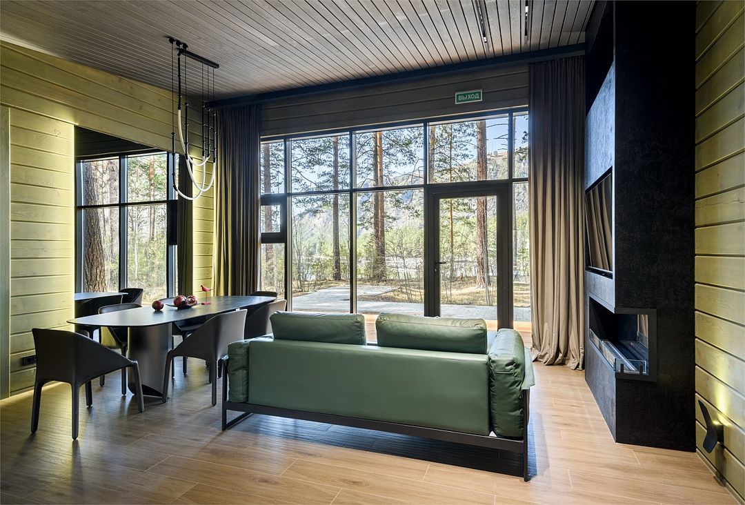 Отдельно стоящий дом 100м2 с двумя спальнями: - у каждой спальни личная ванная комната и гардеробная - двуспальная кровать Double King Size Общая гостиная с кухонной зоной, гостевым санузлом и террасой в 47,5м2 с видом на реку Катунь. Допустимое размещение - 6 гостей (4+2) = 4 основных места + 2 дополнительных - 6 гостей могут быть как взрослые, так и дети, любых возрастов - цена указана за 6 человек Отель "Хвоя в горах" расположен непосредственно на берегу р. Катунь, напротив известных Манжерокских порогов, которые завораживают своей силой и природной мощью. В стоимость включено: - континентальный завтрак, - двухэтажная детская игровая комната, - анимация и мастер-классы, - комьюнити-зона на территории отеля, - в зимнее время - трансфер до горнолыжного комплекса Манжерок, - в летнее время - подогреваемый теплый бассейн с видом на р.Катунь.Услуги и удобства