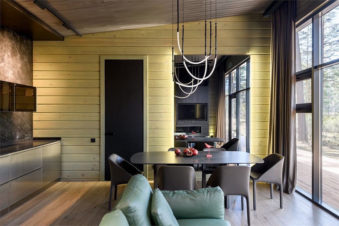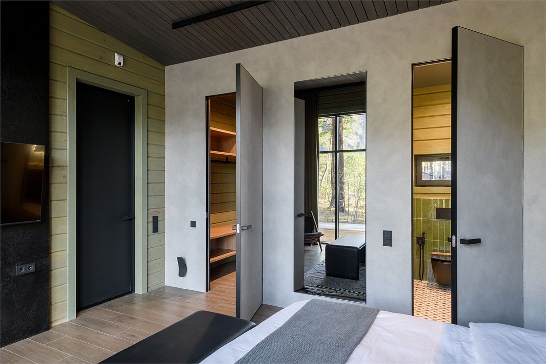 Wi-Fi, телефон, кондиционер, фен, будильник, электронные замки, кофемашина, утюг, ванная комната, душевая кабина, теплый пол, халаты, пляжные полотенца, тапочки, гигиенические средства, терраса, кровать «King size», кресла, шкаф для одежды, вешалки, зеркало, пуфики, эксклюзивная мебель, набор посуды, обслуживание номеров, сейф, раковина, мягкая мебель, отдельный вход в номер, вид на реку, стул, тумба, туалет, панорамные окна, телевизор с плоским экраном, мини-холодильник, мини-кухня, вид на лес, рабочий стол, общественный бассейн, чайная станция, бутилированная вода, затемняющая штора, окна от пола до потолка, прачечная (за дополнительную плату), дождевой и ручной душ, без питомцевВ шале