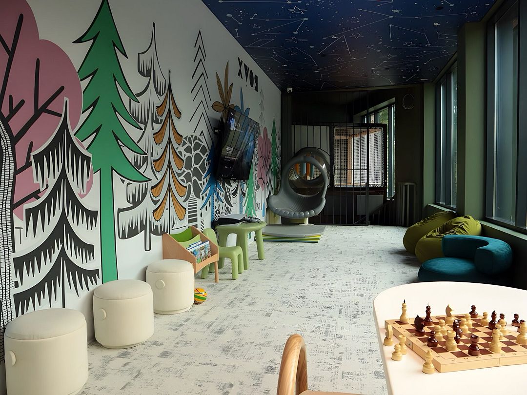 Детская комната отеля «Хвоя в горах» — это комфортное пространство, созданное для увлекательного и безопасного времяпрепровождения малышей. Она работает ежедневно с 9:00 до 21:00, включена в стоимость проживания и предоставляет возможность родителям отдохнуть, пока дети наслаждаются весельем.