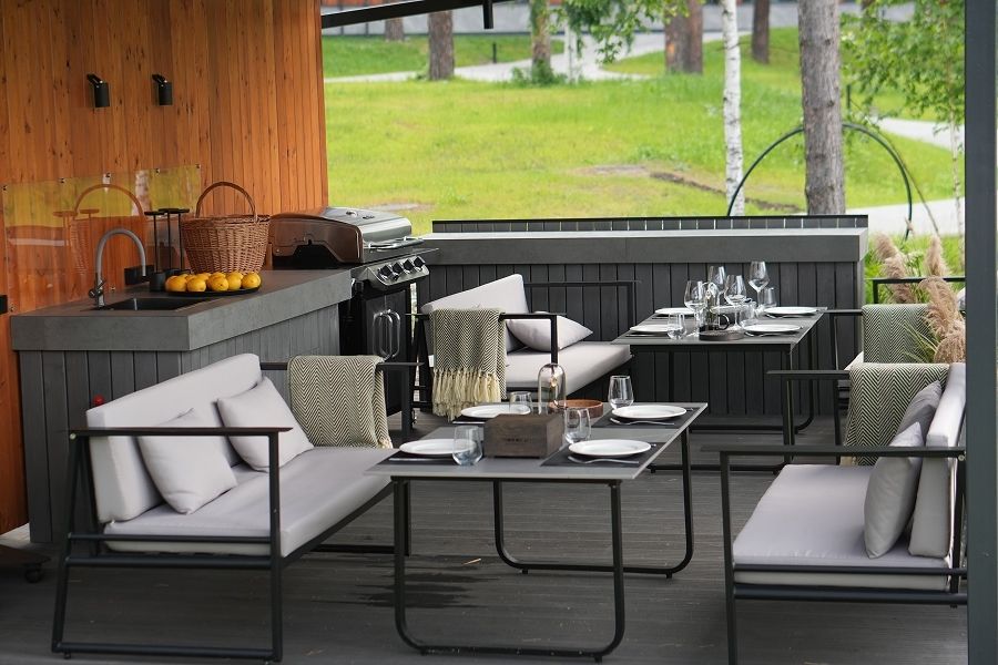 На территории отеля «Хвоя в горах» находится уютная зона комьюнити, которая становится центром вечера для всех гостей. Для любителей природы это место станет прекрасным выбором, чтобы насладиться теплом костра и душевной атмосферой в кругу близких.