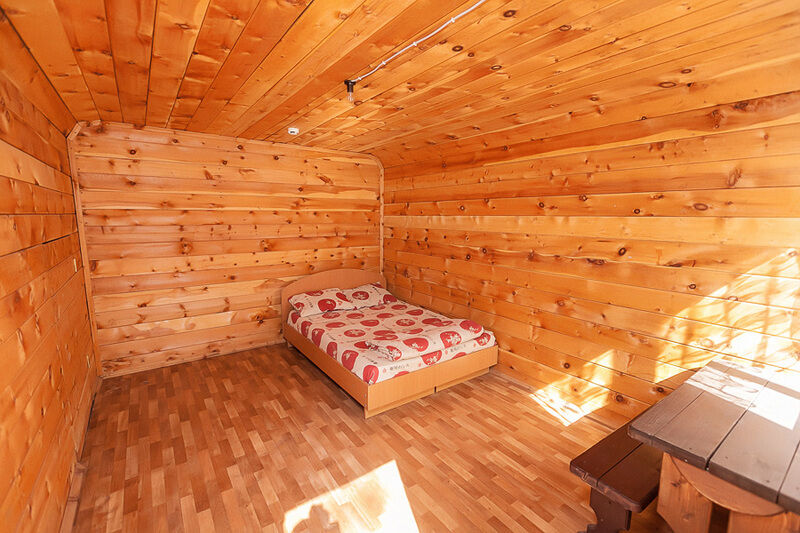 - комната: одна 2-спальная кровать, деревянный уголок (стол с лавочками), столик, тумбочка;