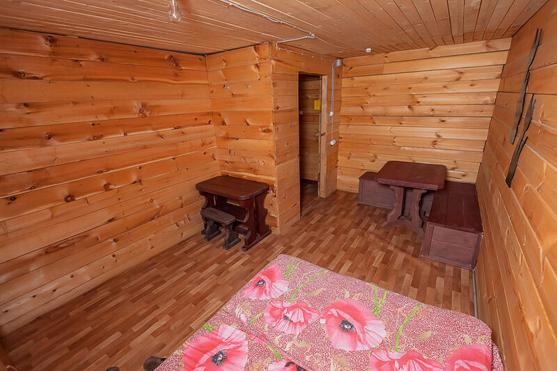 - комната: одна 2-спальная кровать или две 1-спальные кровати, стол, скамейки;