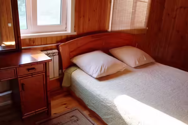 Небольшой домик для тех, кто ценит тишину и уединение. В номере есть туалет и раковина. Душ общий в здании гостиницы.