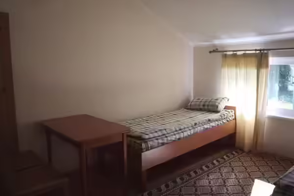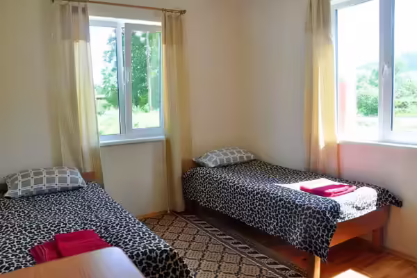 В номере 3 односпальные кровати и дополнительное место, вешалка для одежды, зеркало, стол и стулья. Номер подойдет для небольшой семьи с детьми.