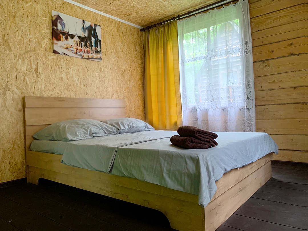 Номер категории «Комфорт» расположен на первом этаже коттеджа и оснащен двуспальной кроватью 140х200 или двумя односпальными кроватями 90х200, в номере имеется холодильник, чайник, душ с горячей/холодной водой, туалет.