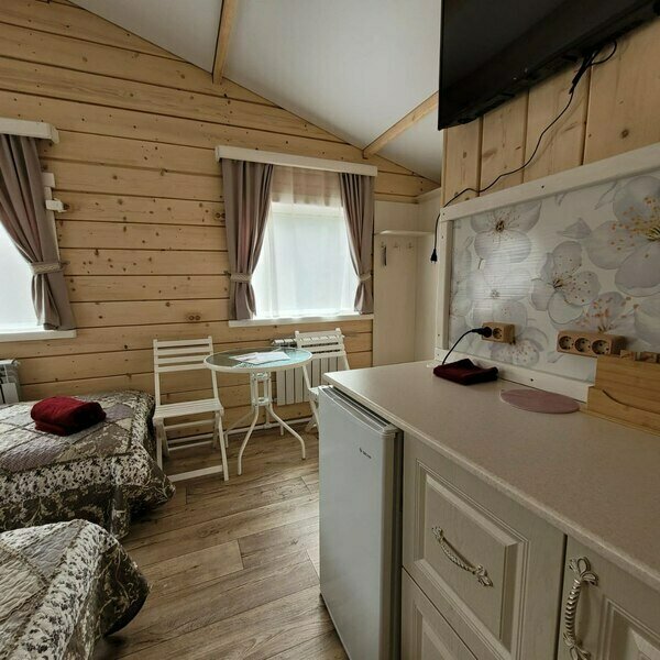 Комфортабельный номер со всеми удобствами: 3 спальных места, мини-кухня, обеденная зона. Ванная комната с совмещенным санузлом и душевой кабиной.