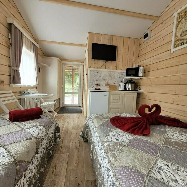 Семейный отдыхДостоинстваСамое лучшее место для отдыха из всех, которые я посещала! Теперь на отдых только сюда! Номера комфортные, везде чистота, на кухне всё есть для приготовления пищи! Территория большая, несколько беседок, мангальные зоны, бассейн с достаточным количеством шезлонгов, батут и песочница для детей, кругом цветы и кустарники, всё кругом благоустроено! Для отдыха есть всё обсалютно! Детям играть места море! Кругом горы, лес, тишина!Хозяева приятные люди, ненавязчивые! Отдохнули с детьми и душой и телом! Идеальное место для отдыха!!! Обязательно сюда вернёмся и однозначно рекомендую другим здесь побывать!