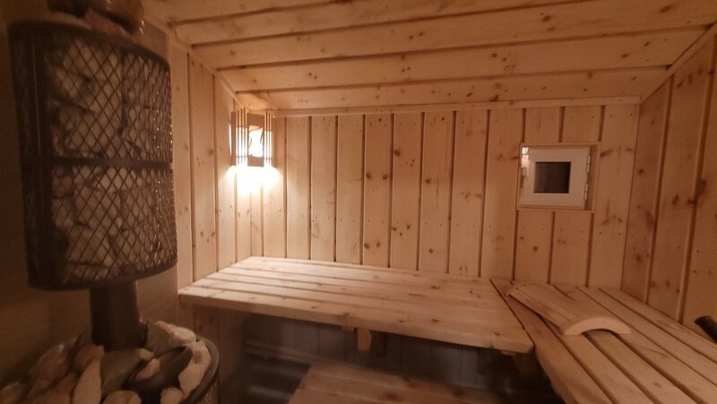 Парная из кедра и титулованная чугунная печь с внутренней каменкой.
