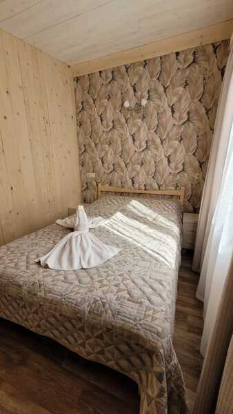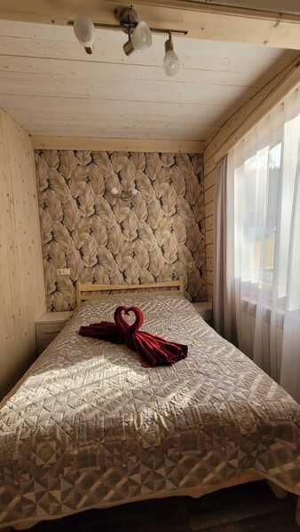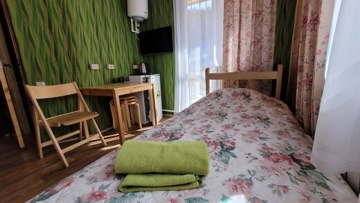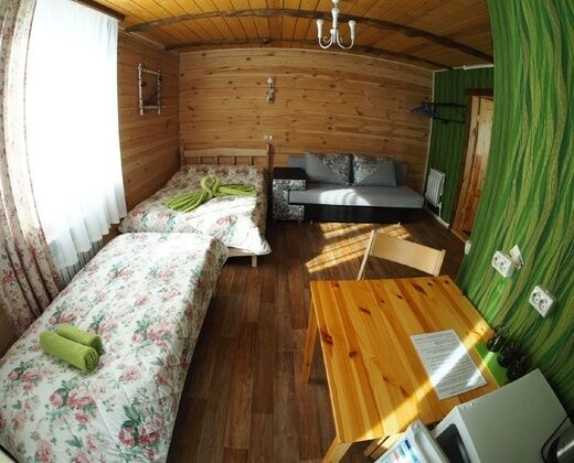 Однокомнатный номер для двух человек с одной двуспальной кроватью. Самый романтичный и уединённый номер - райское гнездышко на 3 этаже! Есть возможность двух дополнительных мест (диван - кровать на пружинных блоках). В номере могут расположиться до 4 человек.