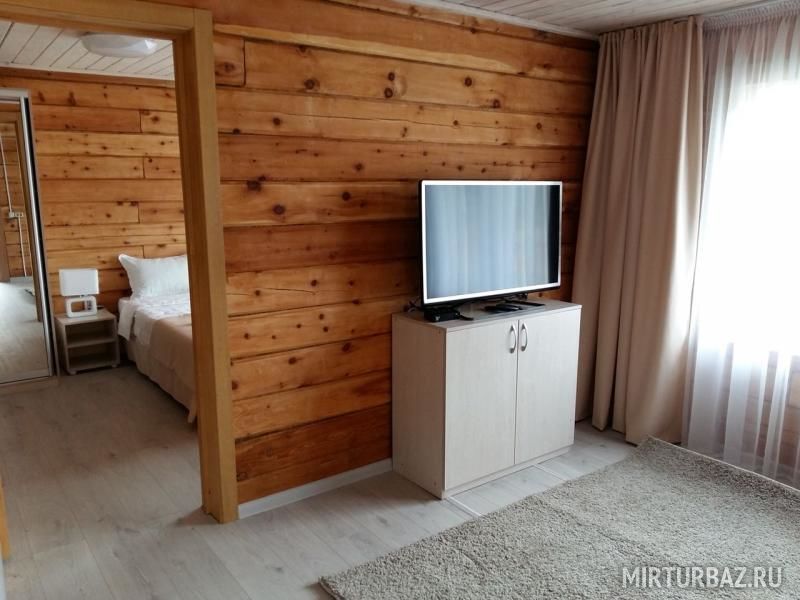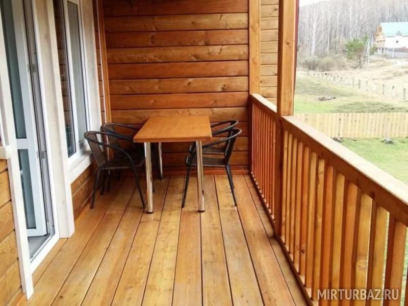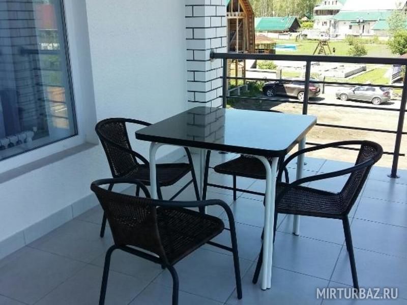 В трехэтажном коттедже с балконами, с видом на Катунь На балконе индивидуальный столик для каждого номера. В номере есть санузел с душем и горячей водой, телевизор, холодильник, посуда, двухместная кровать, диван двуспальный, плательный шкаф.