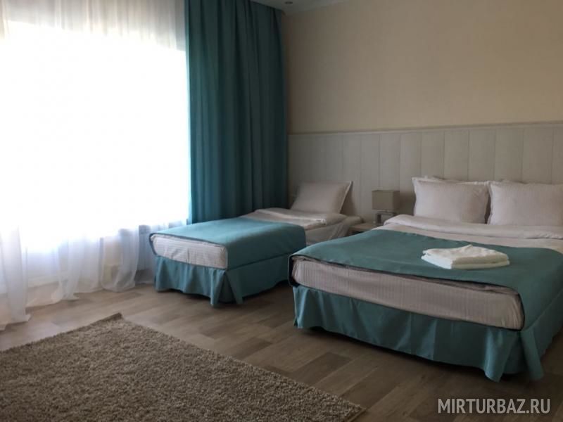 Номер большой площади 44 кв.м. и повышенной комфортности расположен на 1 этаже. В номере 2 спальная кровать, два 2 спальных дивана, камин, кухня, посуда , холодильник, TV, санузел, душевая 8 кв.м., терраса с выходом на бассейн с фантаном и индивидуальной обеденной зоной. Настольный тенис, шезлонги.