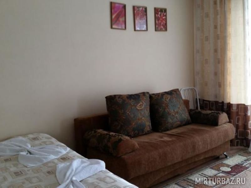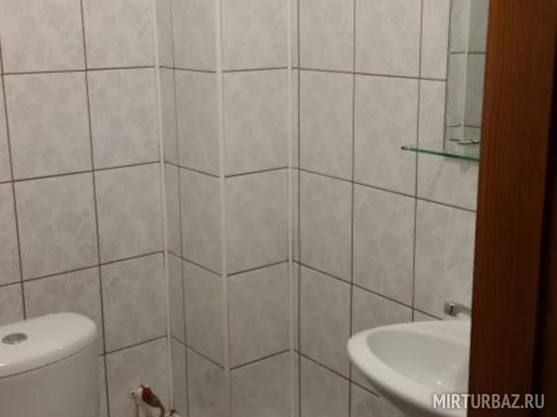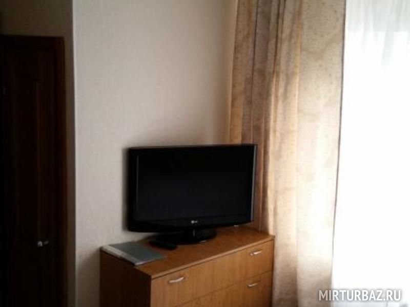 В номере: раскладной диван, (либо двуспальная кровать) комод, ТВ, плательный шкаф. На этаже WC, (унитаз, раковина, душевая кабина с гидромассажем, горячая вода).