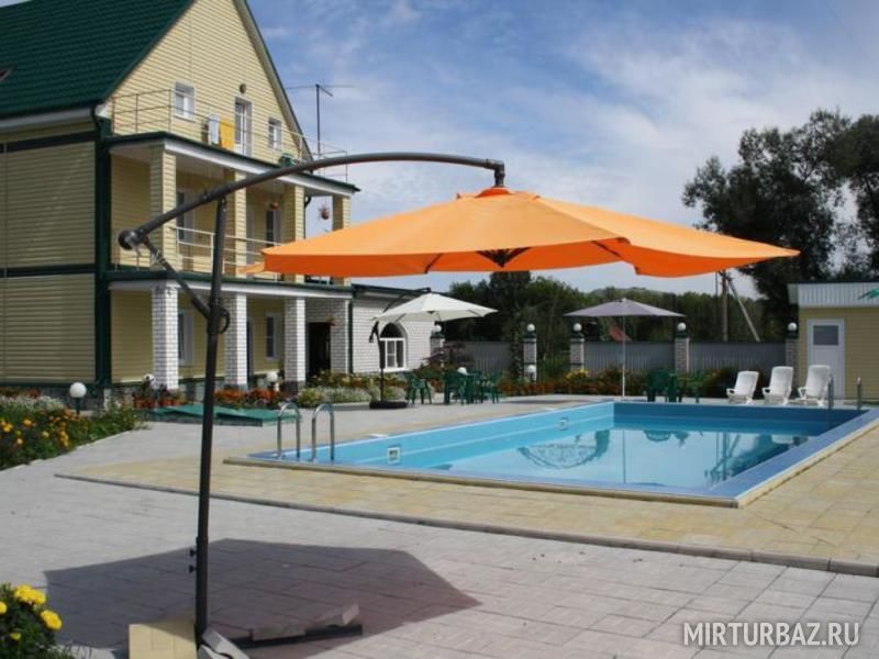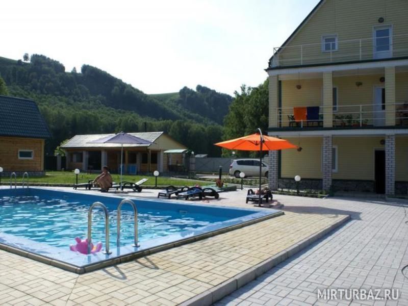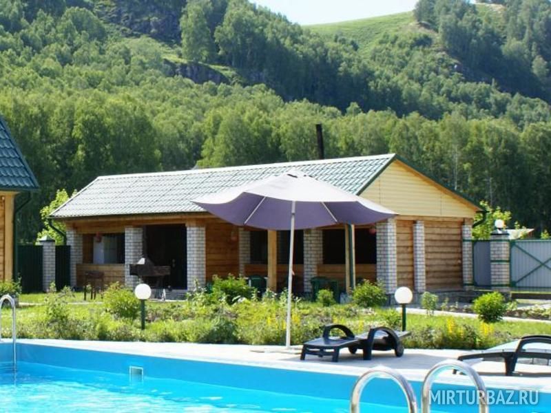 На территории усадьбы находится бассейн с подогревом, вода которого так призывно голубеет под ярким горным солнцем. Удобные шезлонги предназначены для получения великолепного загара. Неподалёку от бассейна топится русская баня из кедра, в которой есть комната отдыха, где можно отдышаться после жаркой парилки и выпить чаю или чего-нибудь покрепче!
