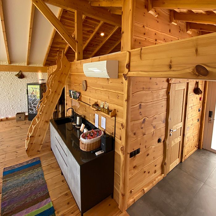 Стильный интерьер с акцентом на натуральные материалы идеально подойдет для романтического уикенда, семейного отдыха или вдохновляющего отпуска в компании друзей. На первом этаже располагается просторная гостиная с кухонной зоной, гостевым санузлом и выходом на террасу с бассейном, где можно проводить вечера в кругу близких и наслаждаться неповторимым видом на парк маралов. Второй этаж включает две спальни с кроватями king-size и ванную комнату. При одновременном бронировании двух дуплексов вся вилла становится вашей приватной резиденцией на Алтае. Также всем гостям предоставляется услуга персонального батлера, который будет на связи в круглосуточном режиме и выполнит любые просьбы.